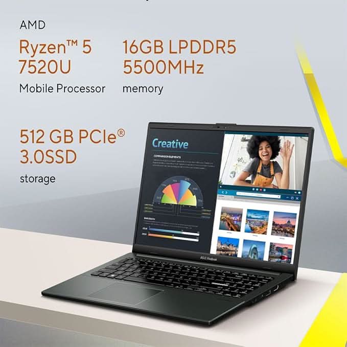 Processor : AMD Ryzen 5 7520U Mobile Processor, 16 GB of fast LPDDR5 memory, 512 GB of speedy SSD storage to make sure there is always plenty power on tap.