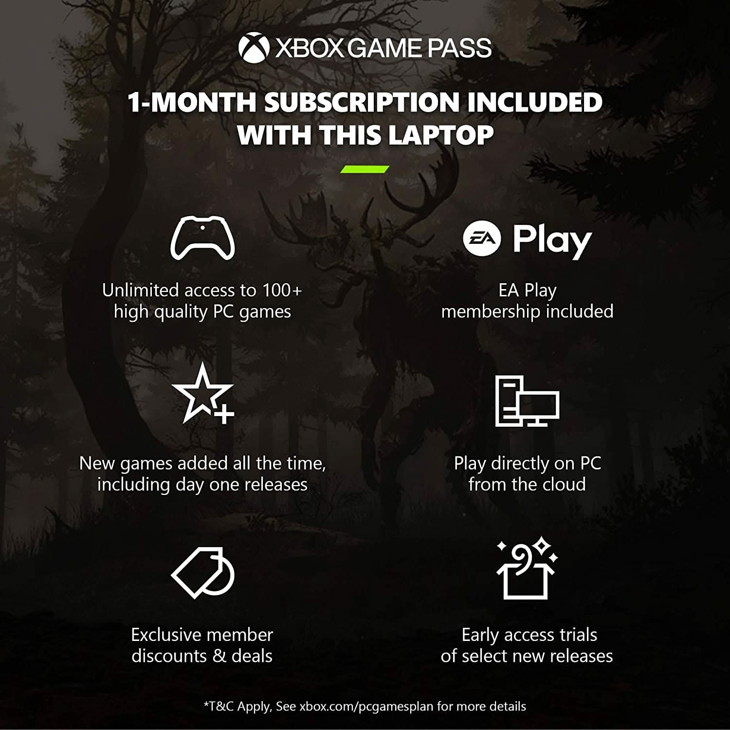 - One-month subscription to Xbox Game Pass thatís included with the purchase of your device