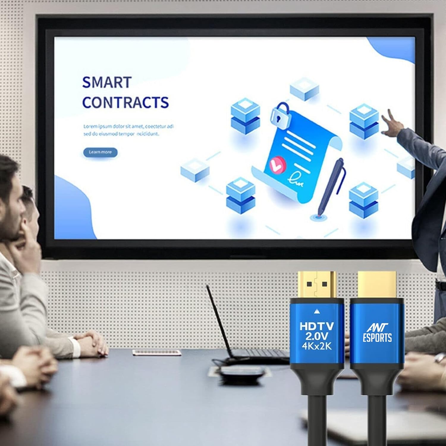 - ANT ESPORTS AEH103 4K 2.0 HDMI CABLE WITH BLUE METAL CAP - 3 METERS I 24K GOLD-PLATED- (B0CQXHN99S)