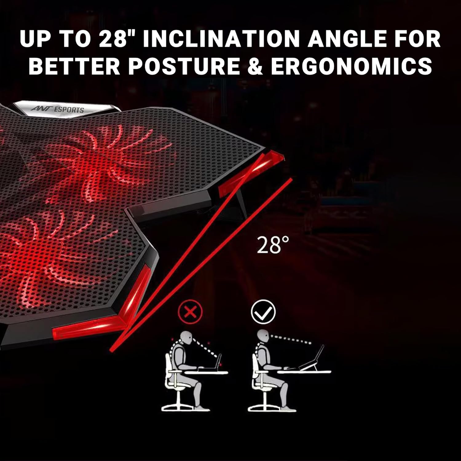 - Completely Flat Design to sit flush with the surface-The Flat Design allows for sturdiness during marathon gaming sessions and provides continued stability in airflow operations. With its menacing red dynamic & static accents and adjustable ergonomic supports, NC270 can be adjusted into 2 Different angles as per user requirement
