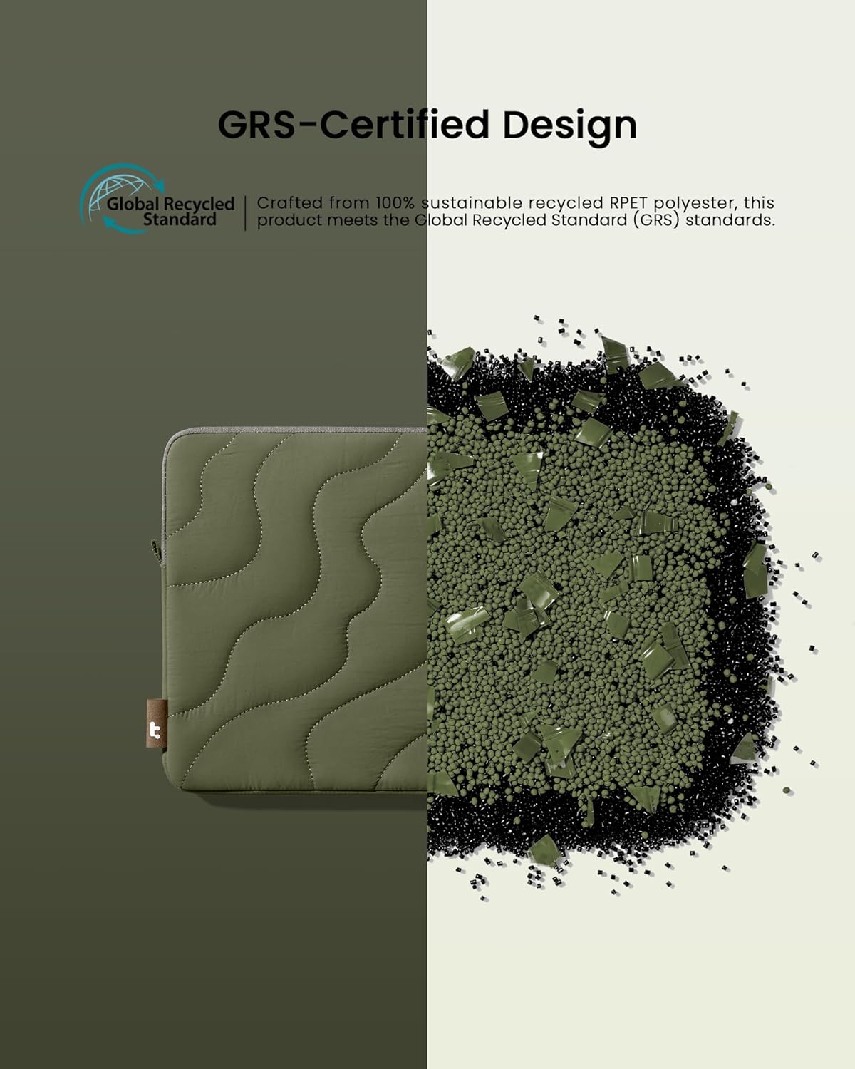 - Terra Elegance: Crafted from recycled materials, this puffer laptop sleeve combines elegance with sustainability. Its distinctive contour line design creates timeless aesthetics, perfectly tailored to embrace your cherished MacBook