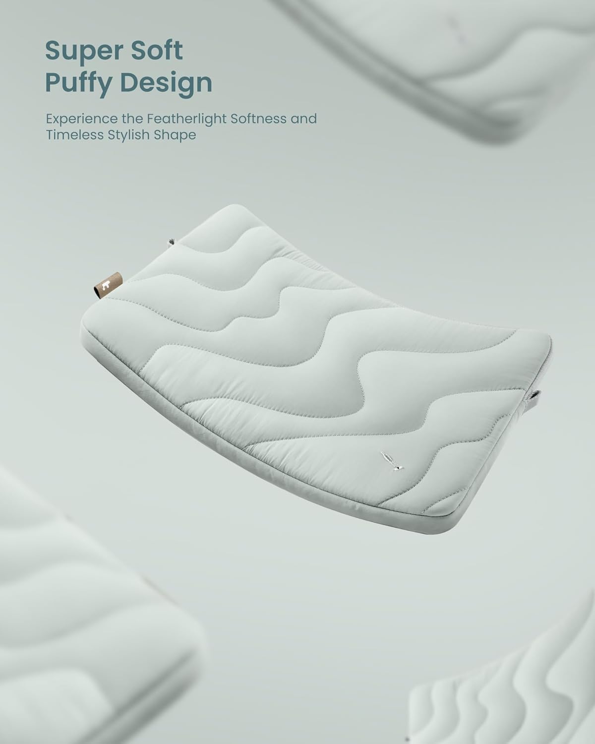 - Puffy Tenderness & Durability: Imagine your device enveloped in our quilted design sleeve, crafted with a puff-like softness yet firm in structure. This sleeve, resembling a plush cushion, offers your tech the perfect blend of tenderness and robust protection. It slides smoothly into larger bags, always holding its shape, and provides a snug, secure fit for your device. Experience the unique combination of tenderness and durability