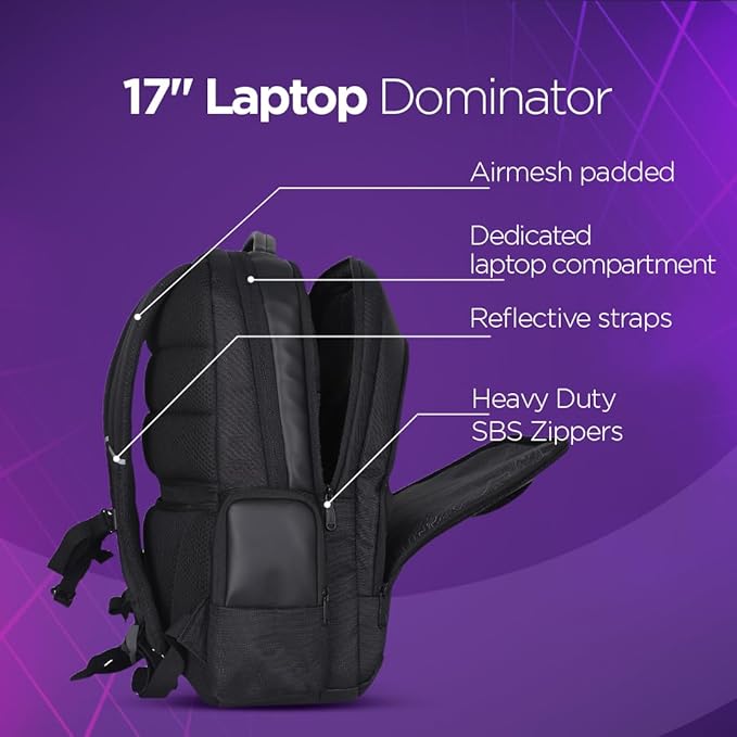 - Color: Premium Black Color, Inner Printed Black Color Lining Fabric; Compatibility: Fits Up to 17” Laptops; Litre Capacity: 29 L