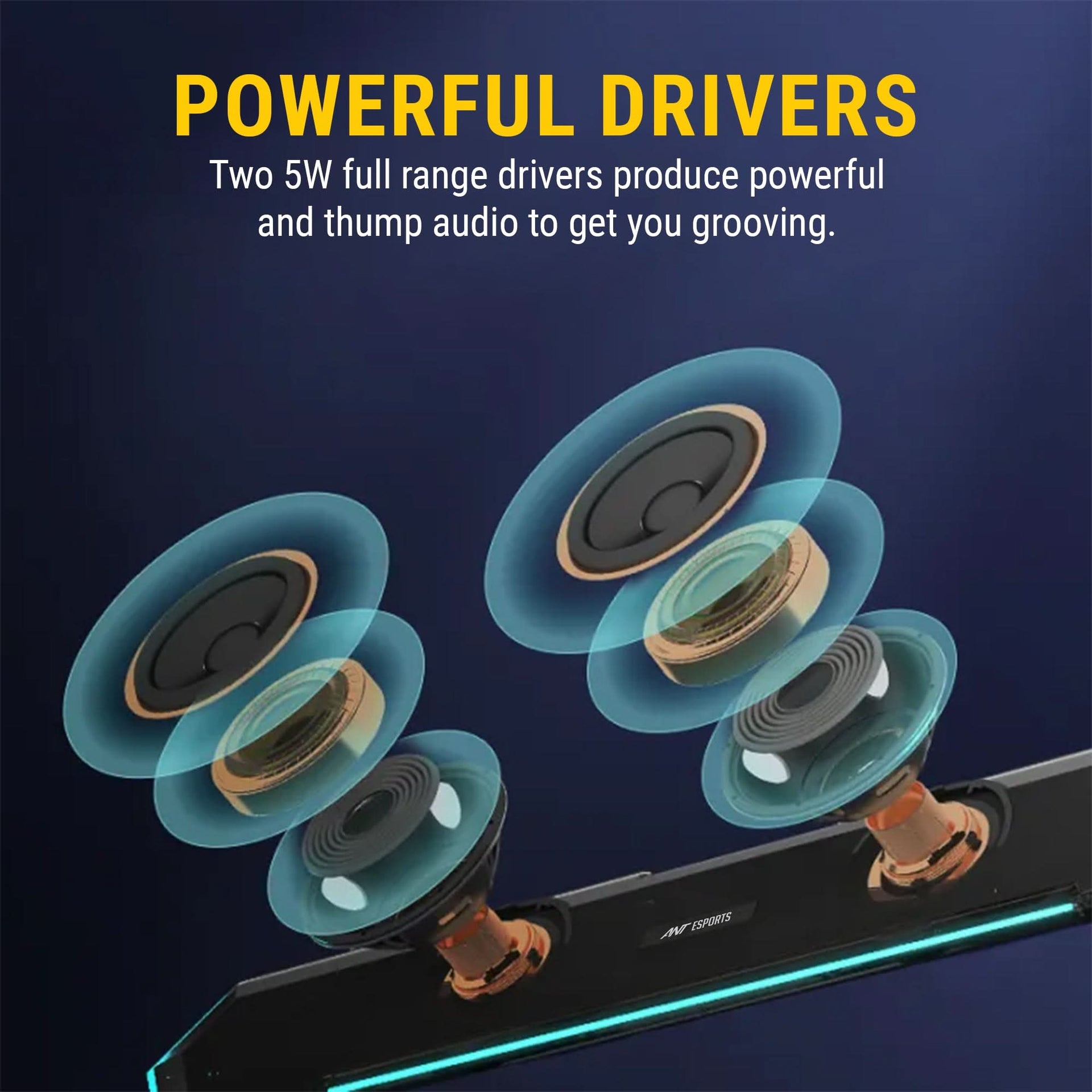 - Powerful 2.0 Configuration: The Ant Esports GS365 SB gaming speaker brings dynamic audio to your gaming setup with its 2.0 configuration. Featuring a dual 5W speaker setup, it delivers a total power output of 10W, ensuring immersive sound for an enhanced gaming and audio experience.
