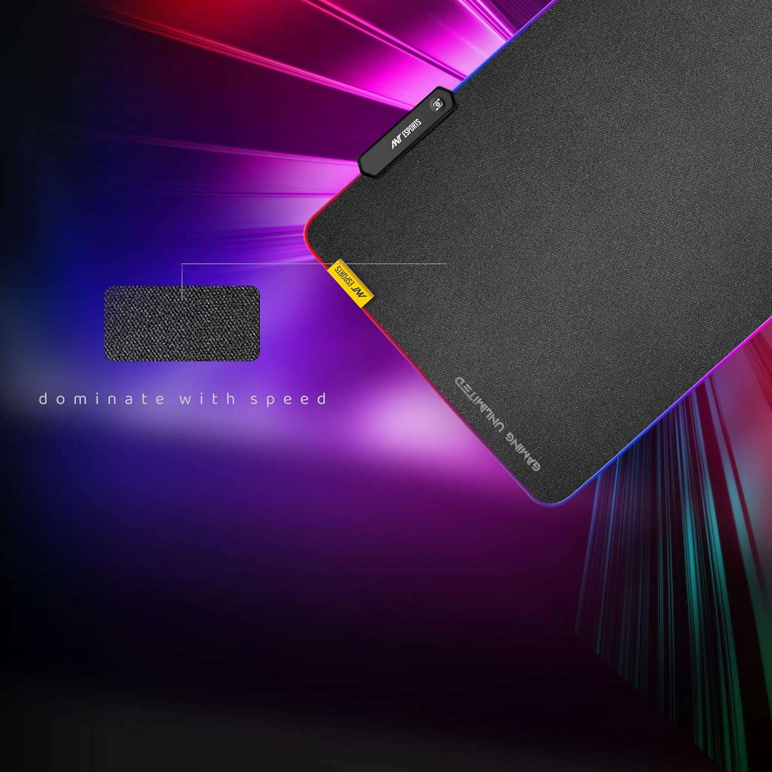 - Superfine Fiber Braided Material: This MP400 RGB Gaming Mouse Pad pixel-precise targeting and tracking optimized for all mouse sensitivities and sensors, no any delay or disconnection situation; Glow fiber and soft cloth surface with non-slip rubber base ensures precise , accurate mouse control and consistent stability on your desk