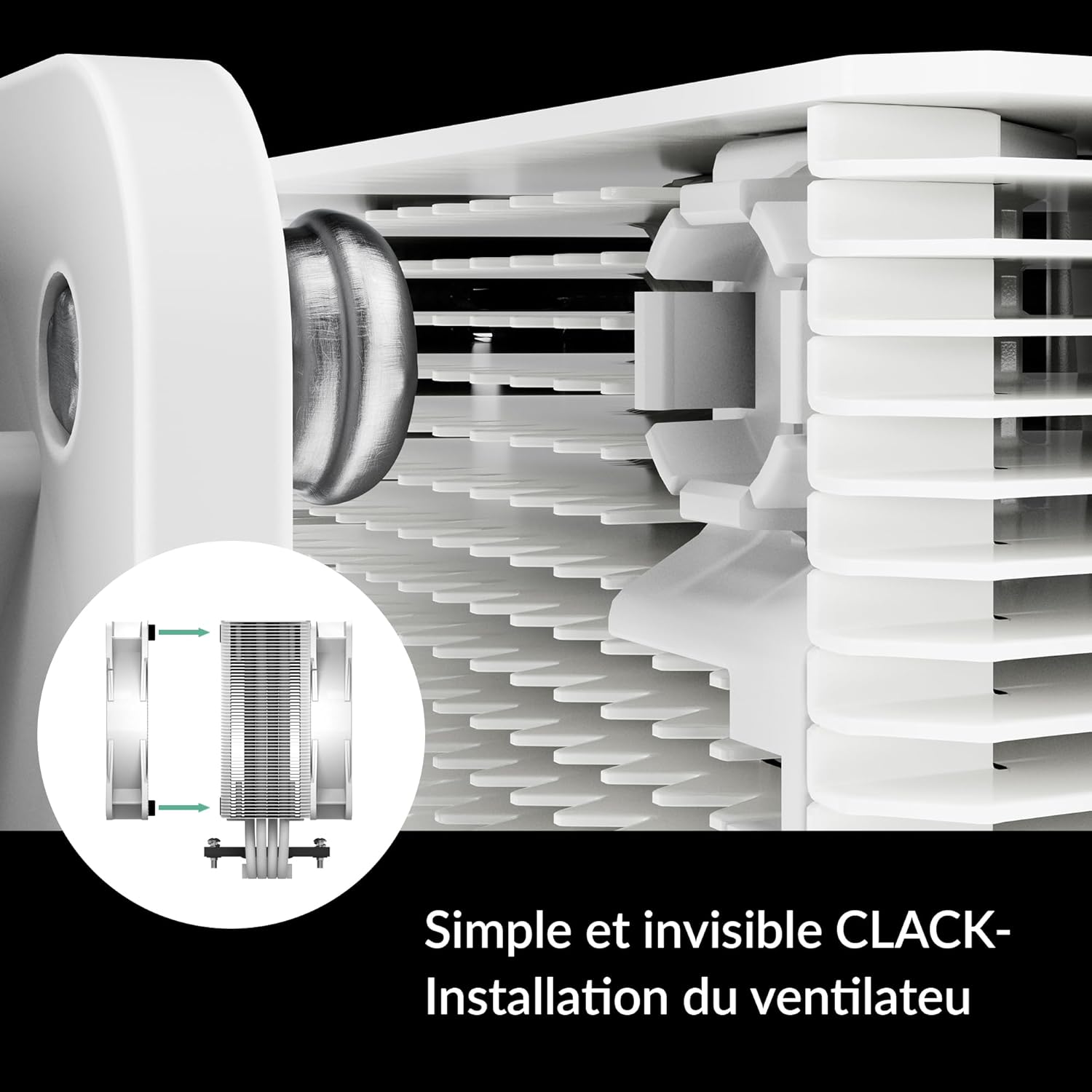 Thanks to the innovative mounting system, booth fans are effortlessly mounted in the heatsink using a click system. This mounting method eliminates the need for fan clips, making it easier to install the cooler or replace the fans, even if the cooler is already installed. The Freezer 36 A-RGB is therefore compatible with most 120 mm fans.
