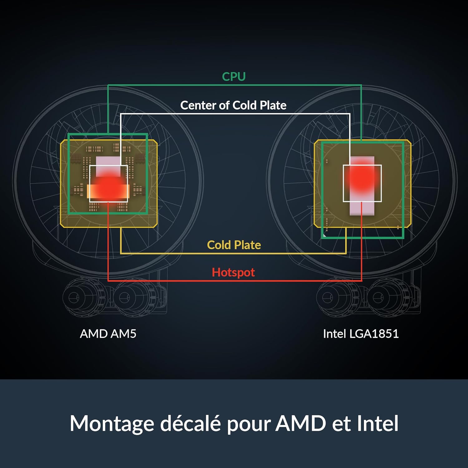 - NATIVE OFFSET MOUNTING FOR INTEL AND AMD: Shifting the cold plate center toward the CPU hotspot ensures more efficient heat transfer