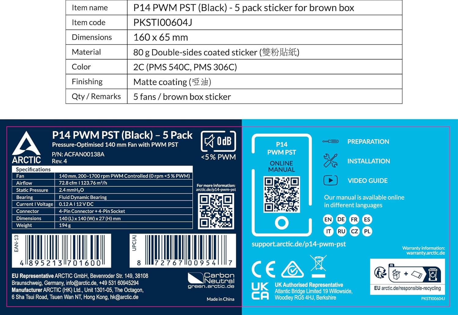 | Manufacturer | ARCTIC, ARCTIC HK LTD |
