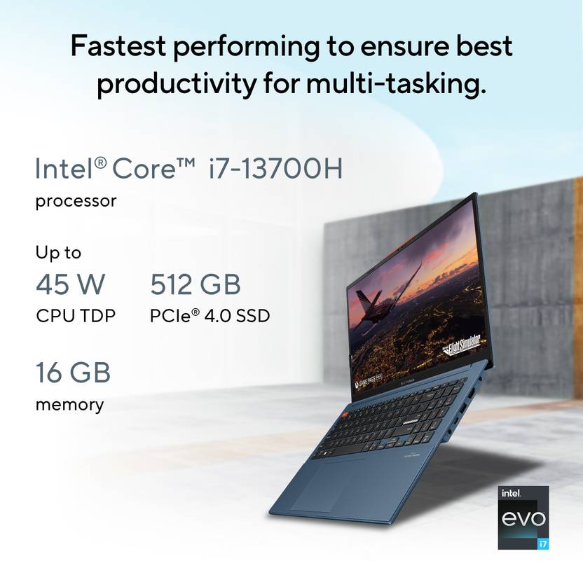 - ASUS VIVOBOOK S 15 OLED INTEL EVO H-SERIES INTEL CORE I7 13TH GEN 13700H - (16 GB/512 GB SSD/WINDOWS 11 HOME) S5504VA-MA741WS THIN AND LIGHT LAPTOP (15.6 INCH, SOLAR BLUE, 1.70 KG, WITH MS OFFICE)