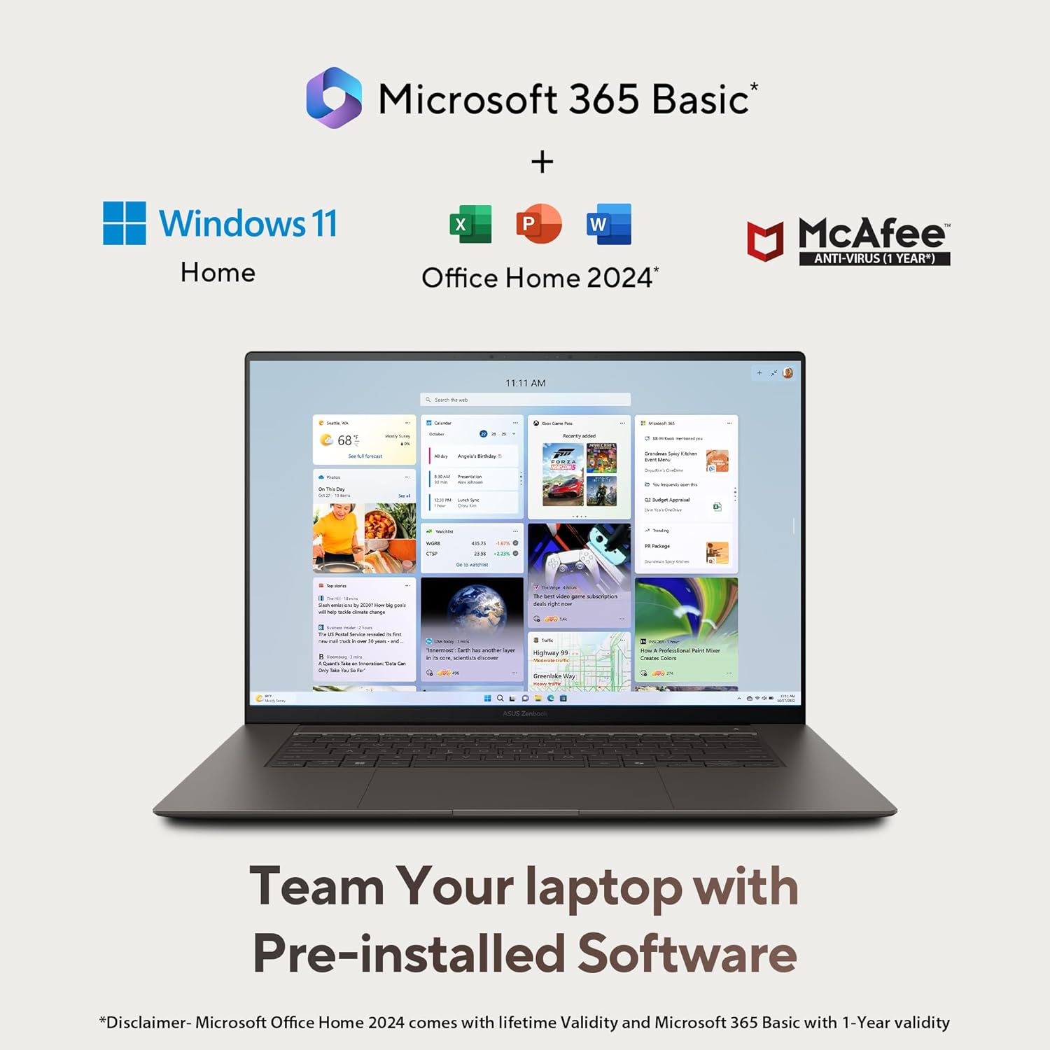 - ASUS ZENBOOK S16, 16" TOUCH SCREEN, 3K OLED, AMD RYZEN AI 7 OCTA CORE 350,COPILOT+ AI PC (24GB/1TB/AMD RADEON IGPU/WINDOWS 11/M365 BASIC (1YEAR)*/OFFICE HOME 2024/ZUMAIA GRAY/1.5 KG), UM5606KA-RJ109WS