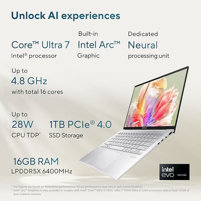 ASUS ZENBOOK 14 OLED, LIGHT WEIGHT LAPTOP, AI-POWERED INTEL EVO CORE ULTRA 7 155H (16GB/1TB/INTEL ARC GRPH/35.56 CM (14) 3K/WINDOWS 11 HOME) UX3405MA-PZ751WS