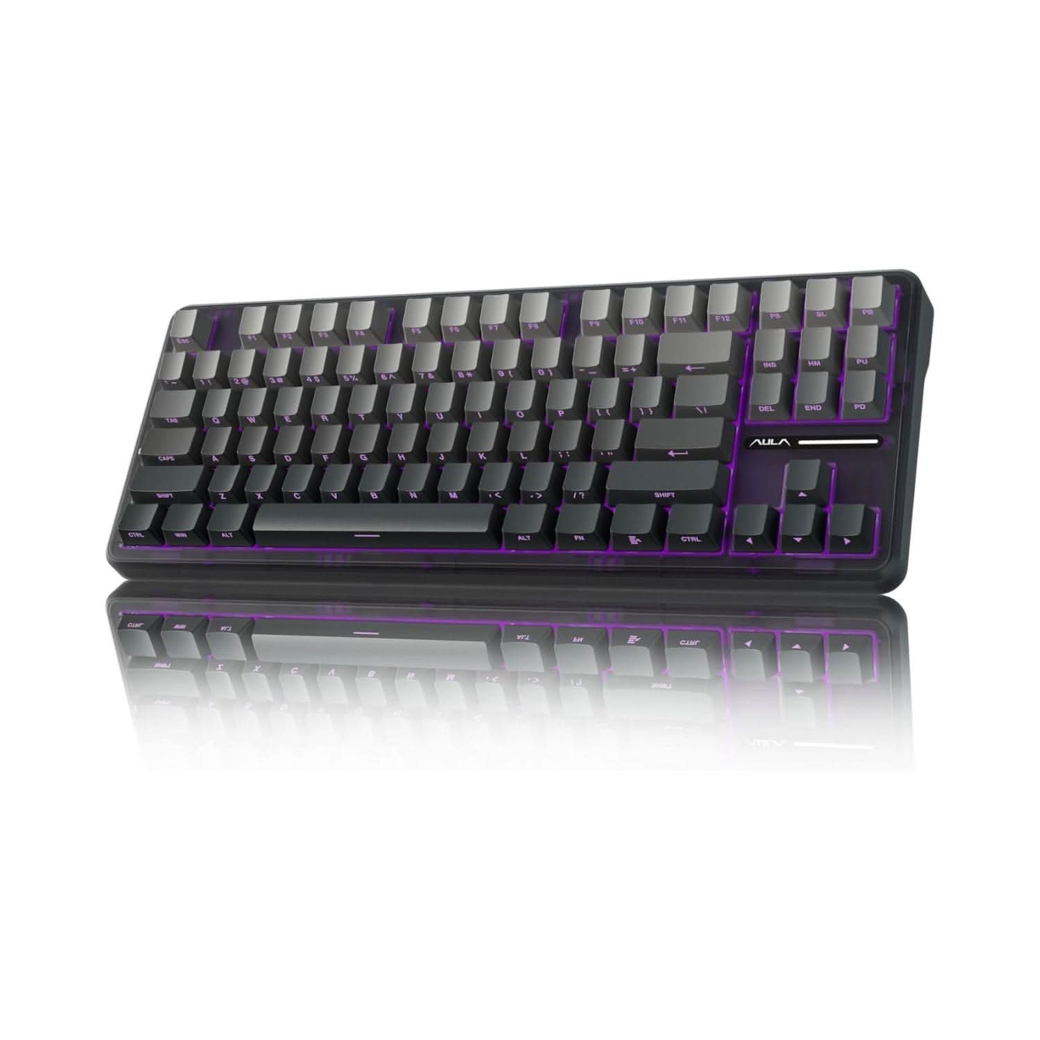 - 【Tri-mode Connection Keyboard】AULA F87 wireless mechanical keyboard works with Bluetooth, 2.4GHz wireless and USB wired connection, can connect up to five devices at the same time, and easily switch by shortcut keys or side button. F87 computer keyboard is suitable for PC, laptops, tablets, mobile phones, PS, XBOX etc, to meet all the needs of users. In addition, the rechargeable keyboard is equipped with a 4000 mAh large-capacity battery, which has long-lasting battery life.