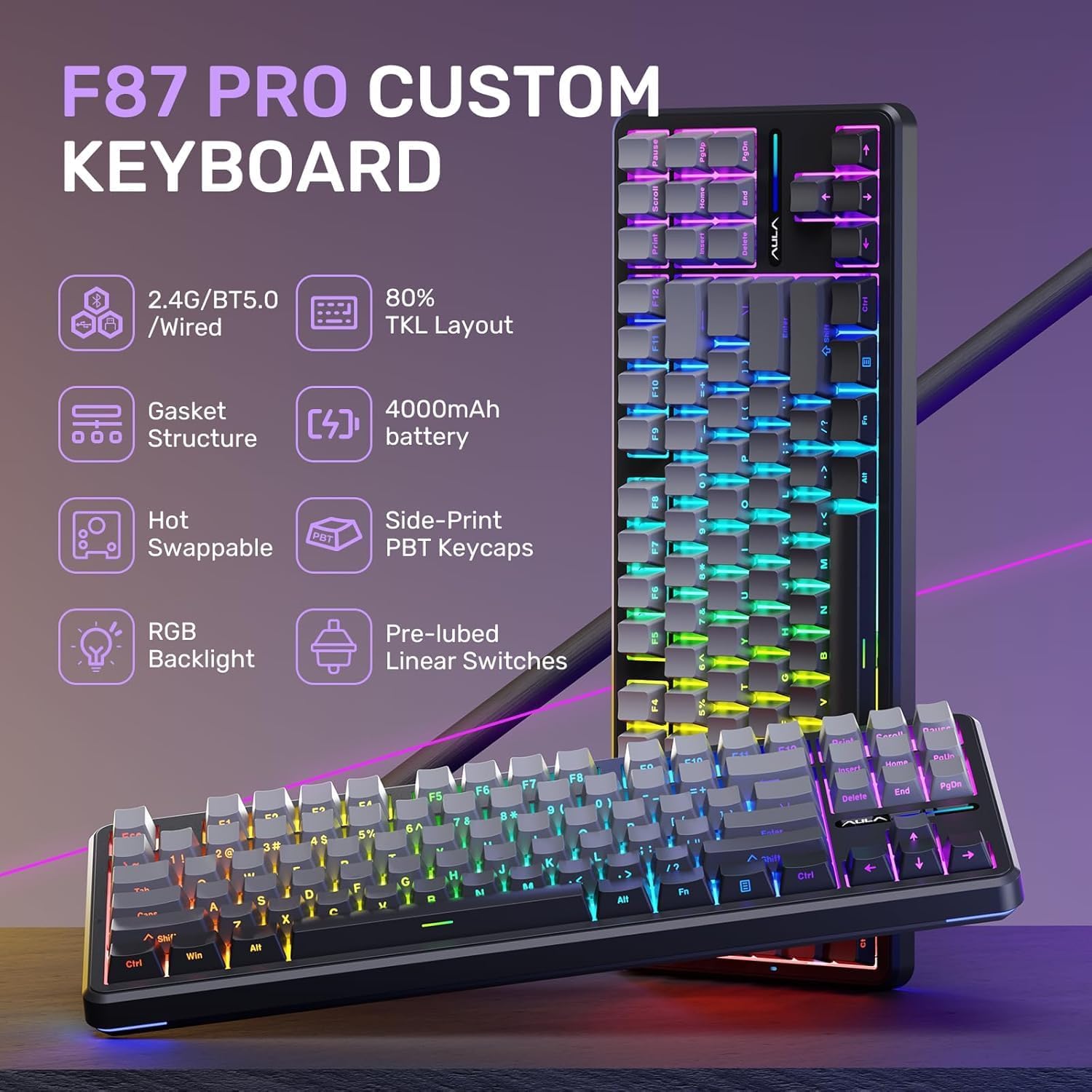 - COMPREHENSIVE AFTER-SALES SERVICE: This customized keyboard wired is different from the 87PRO on the market, we have improved the case and switches, please pay attention to the screening. AULA provide 48 months of after-sales service to ensure you have no worries while using the clicky keyboard. Whether it is a product quality issue or a usage problem, our professional team is always ready to offer support and solutions