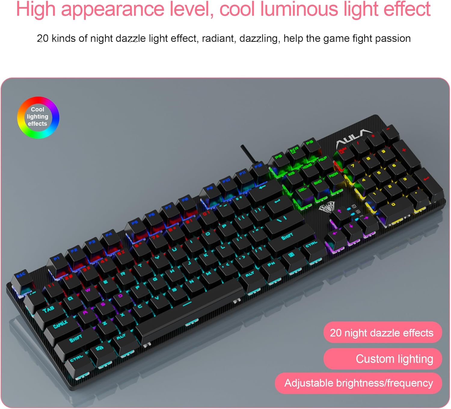 - 🎮🏆🎮【BLUE SWITCH & WIDELY COMPATIBILITY】Adopt more professional mechanical shaft. The blue switch gaming keyboard designed to offering the satisfying tactile typing experience, deliver accurate, responsive key commands for typing and gaming. USB wired connect, plug and play, no driver required. Suitable for ps4, ps5, xbox, PC, MAC tablets, laptops, desktop computer. Compatible with Mac OS, Windows 7/8/10/XP/VISTA. Very suitable for PC gamers/typists/cashiers/writer/programmer/teacher/student