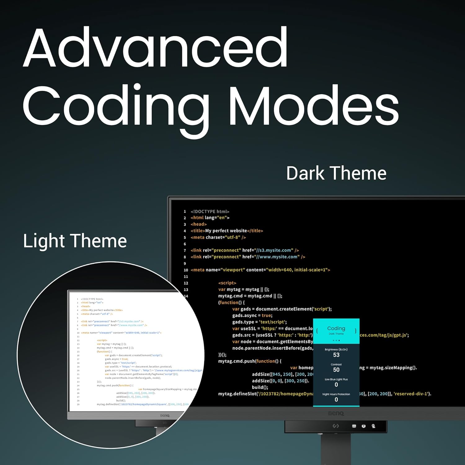 - 【Advanced Coding Modes】 for Improved Codes Differentiation Crafted for programmers, BenQ Programming Monitor offers you full immersion in your code.