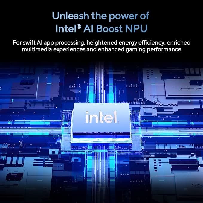 | Processor | Intel Evo Core Ultra 5 Processor 125H 1.2 GHz (18MB Cache, up to 4.5 GHz Turbo Boost, 14 cores, 18 Threads) || Intel AI Boost NPU | ||||||||||||||||
