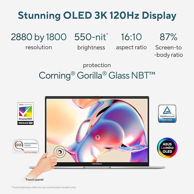 Display : 14" inch 3K (2880 x 1800) OLED 16:10 aspect ratio 120Hz, 500nits HDR peak brightness, Glossy display, Keyboard : Backlit Chiclet Keyboard