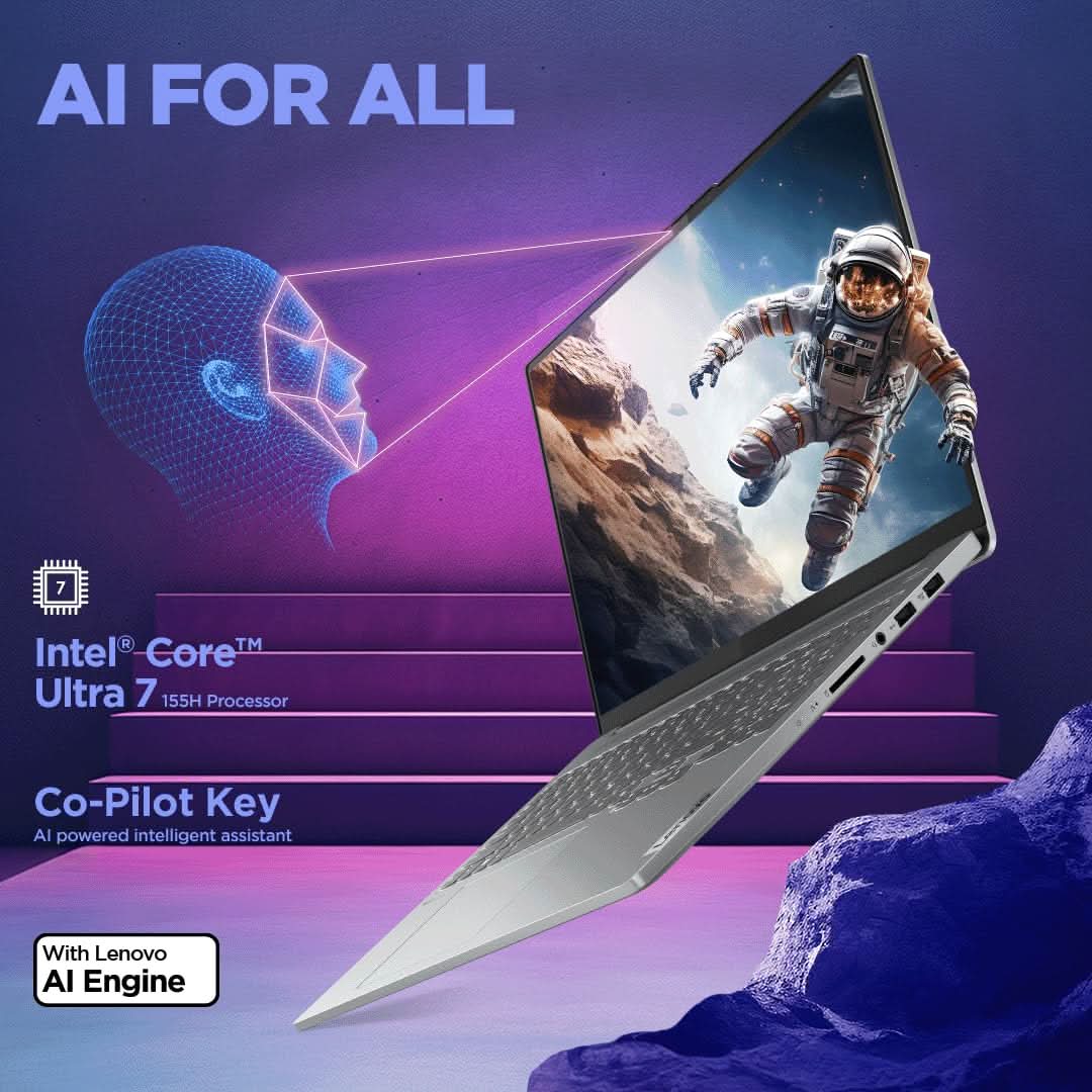 AI Enabled PC | Processor: Intel Core Ultra 7 155H | 16C (6P + 8E + 2LPE) / 22T, Max Turbo up to 4.8Ghz | 16 Cores | 22 Threads | Cache: 24MB