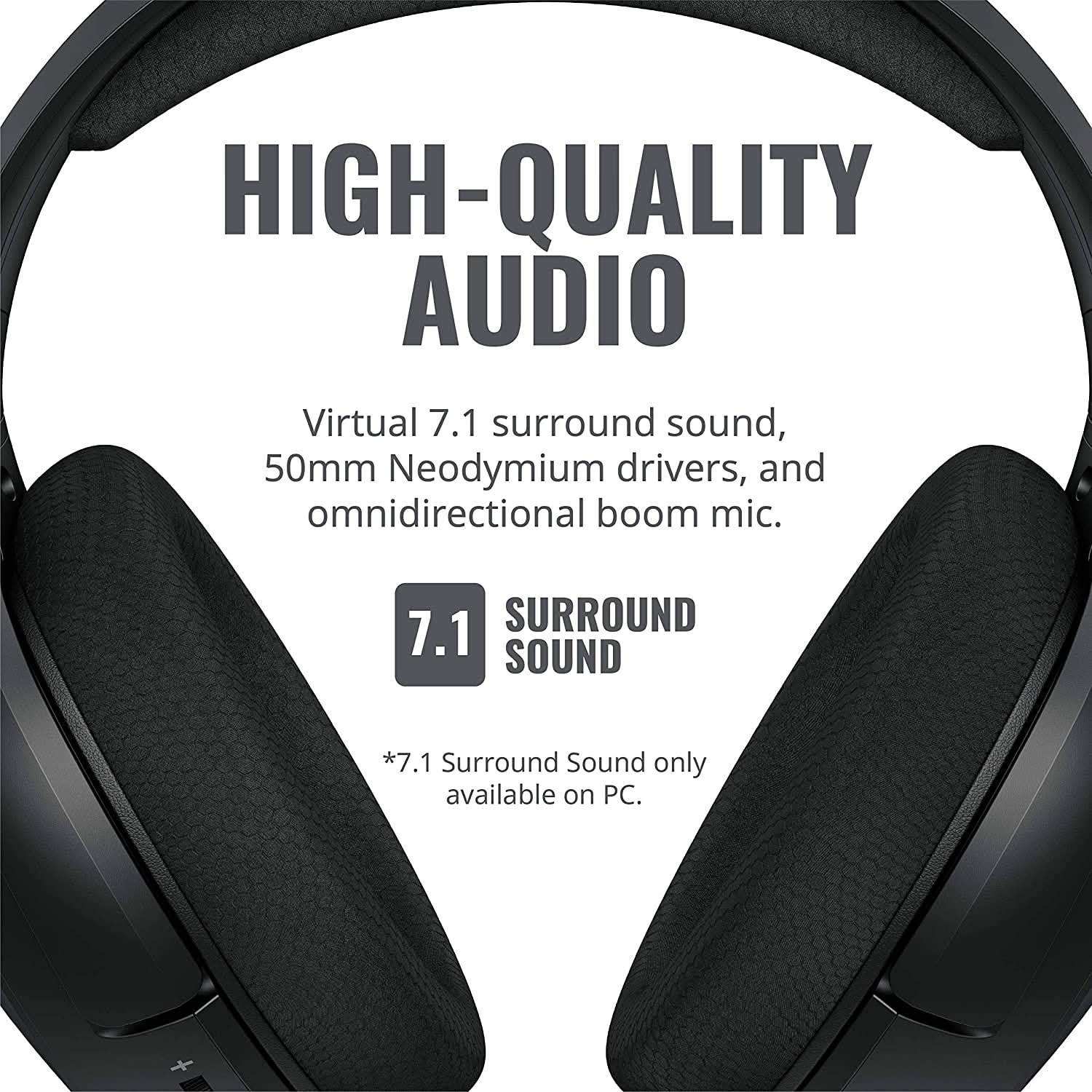- High-Quality Audio - Virtual 7.1 surround sound, 50mm Neodymium drivers, and omnidirectional boom mic for crystal clear sound quality on both ends.