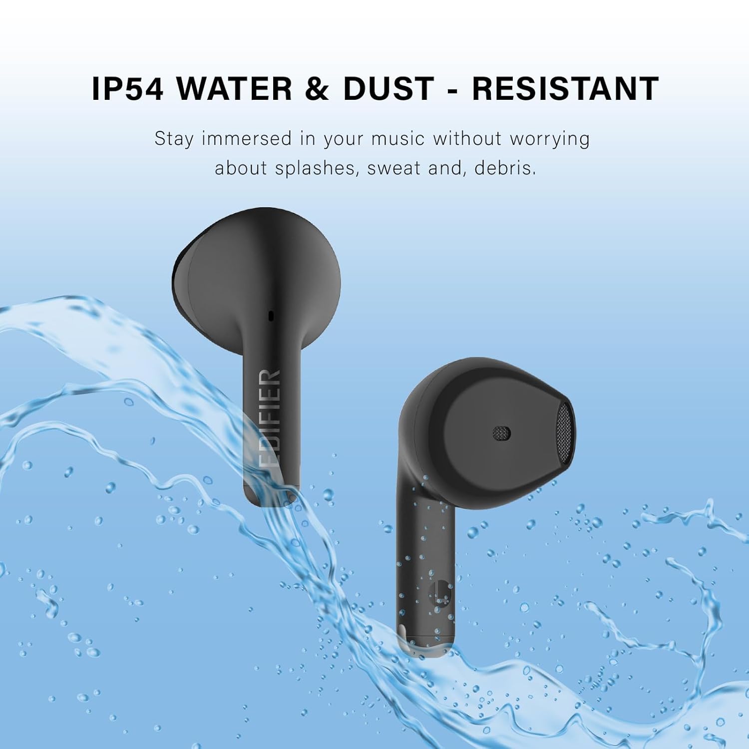 - Up to 26 hours of playtime Clear call quality Enjoy high-quality music with the customized tuned 13mm drivers Low latency under the game mode, enjoy seamless video experience as well Personalize EQ controls and more at Edifier Connect APP IP54-certified dust and sweat proof