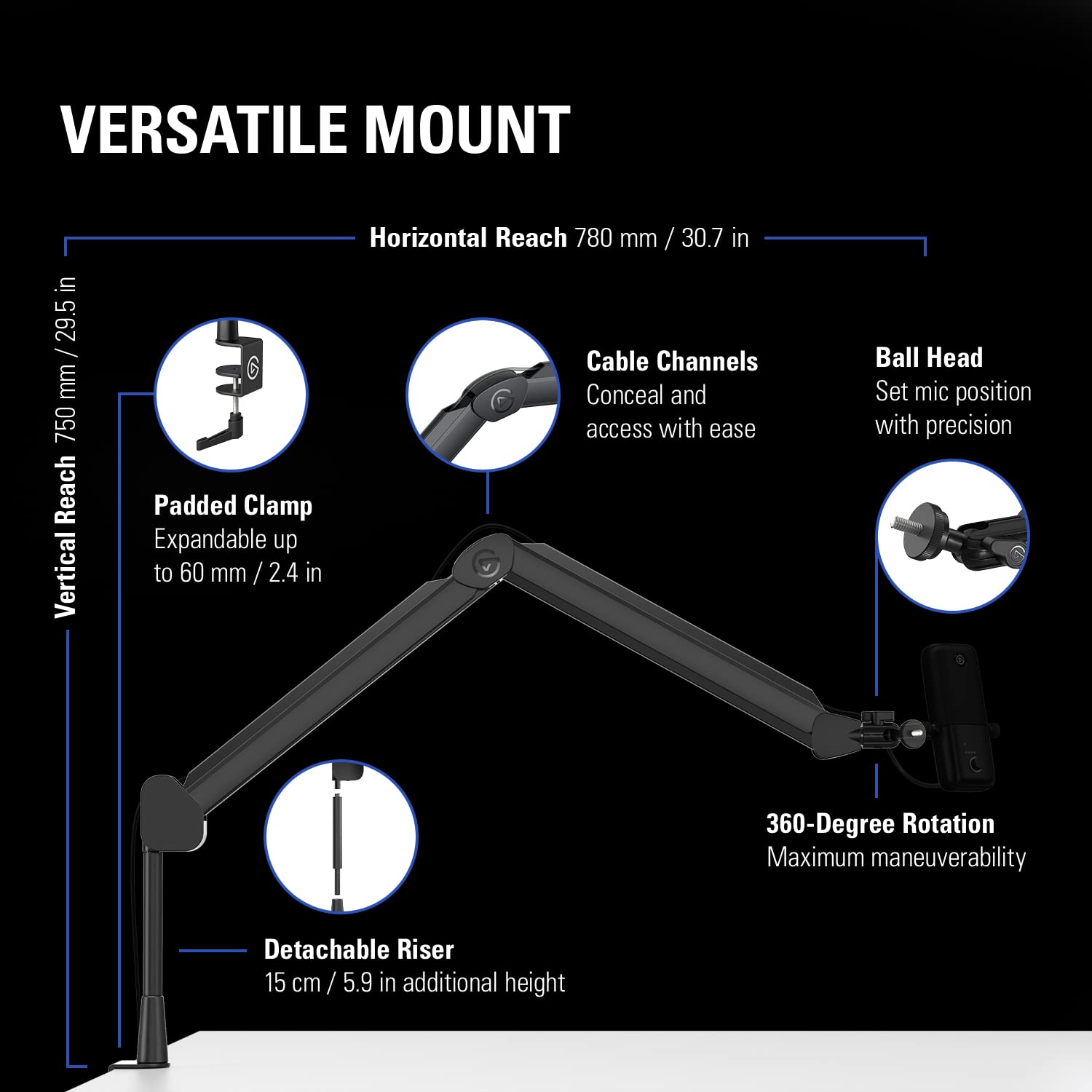 - Included Components  :  Wave Mic Arm, Riser extension, Counterweight, 1/4“ to 3/8“ and 1/4“ to 5/8“ Adaptors, Allen Wrench, Quick Start Guide