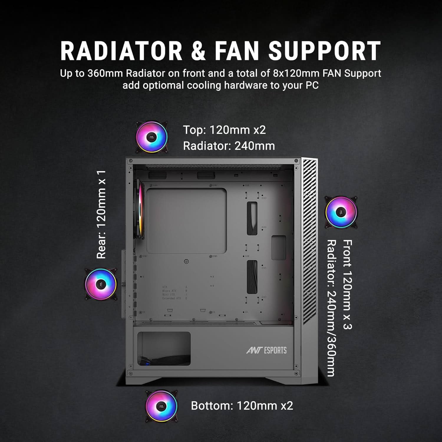 - 6 Fans, 0 Compromises! Get great airflow and cooling with 6t Pre-Installed Static RGB FANs out of the box, and the option to mount 360mm AIO in front, or 240mm on Top.