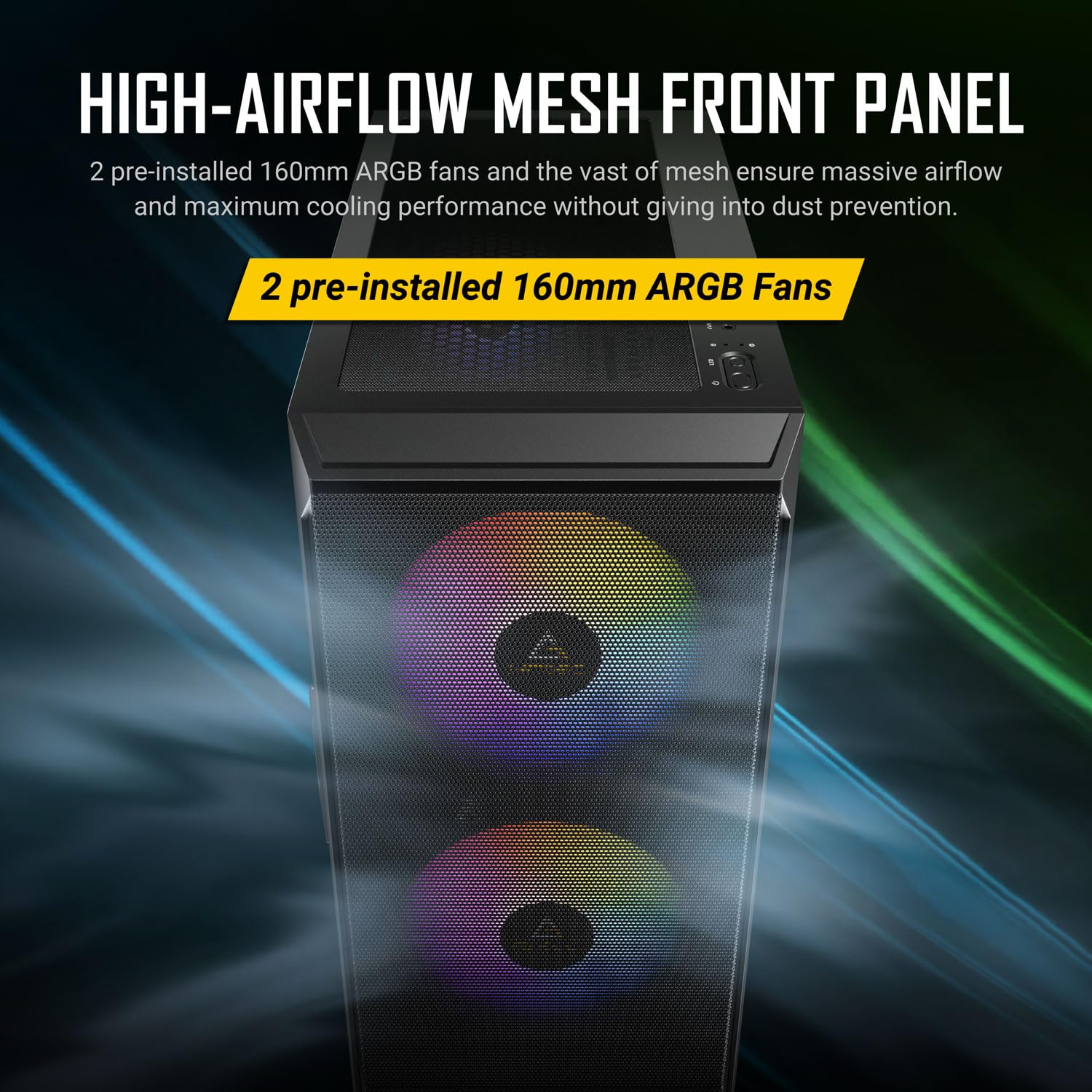 | Special Features | High Airflow Mesh Front Panel, Pre-Installed ARGB Fans, Build-In LED & PWM Fan Controller |