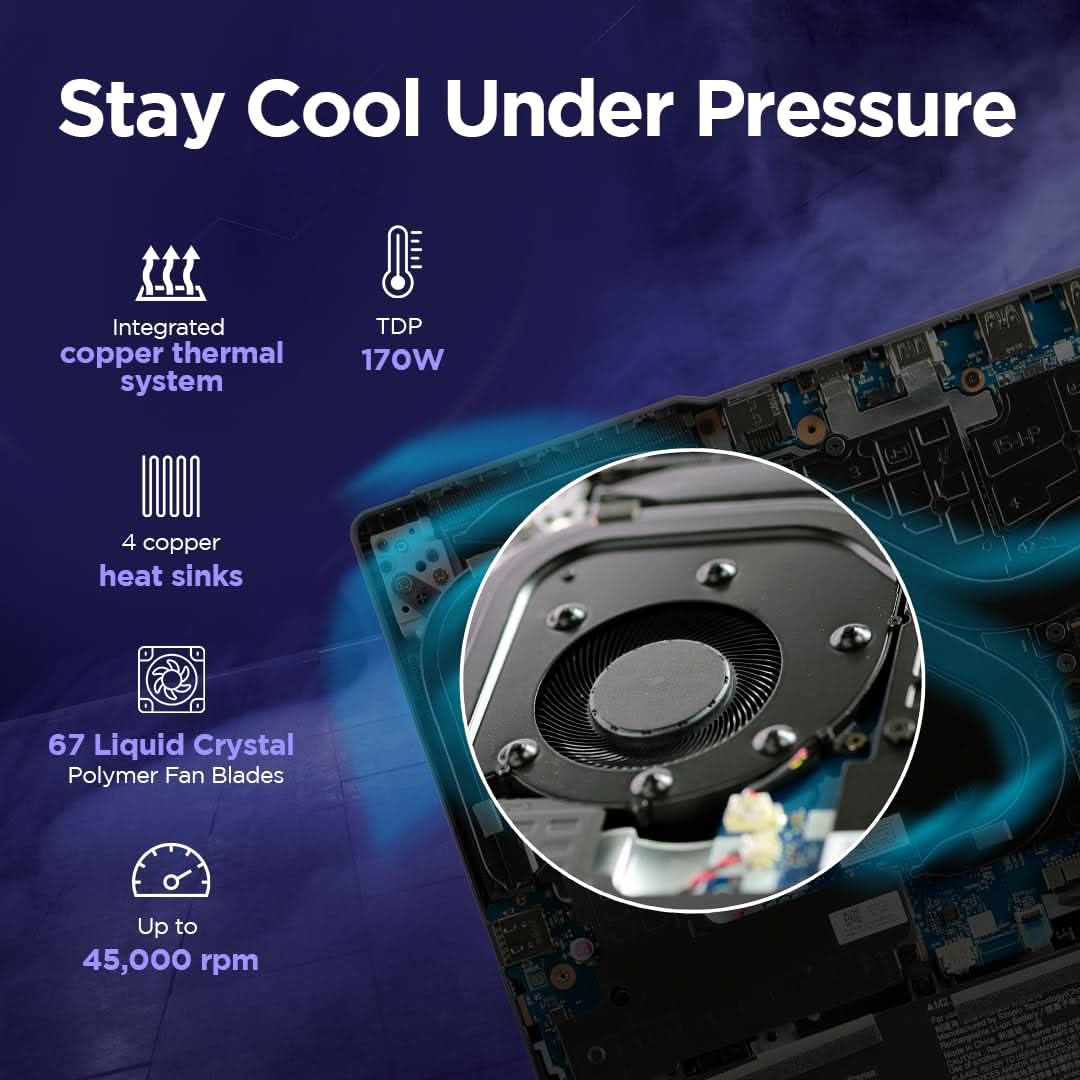 - Graphics: NVIDIA GeForce RTX 4060 8GB GDDR6 Dedicated Graphics Boost Clock 2370MHz with max TGP 140W | Free-Sync and G-Sync || Cooling: Legion ColdFront Hyper innovative thermal system features fans spinning both inward, working in tandem to eciently expel hot air from the rear, ensuring uninterrupted gameplay. A dedicated hyperchamber maintains optimal temperatures, delivering 15W more power in Extreme Mode, reducing skin temperature by 2°C, and cutting noise by 2db.