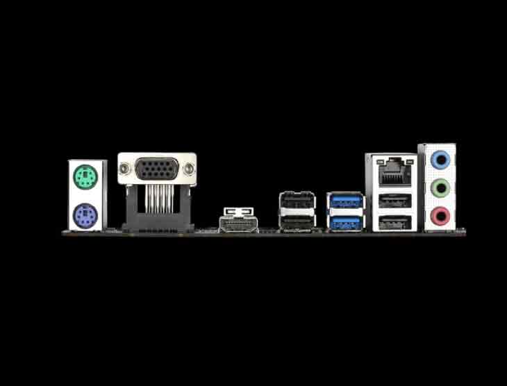 | Back Panel Connectors | 1 x PS/2 keyboard port 1 x PS/2 mouse port 1 x D-Sub port 1 x HDMI port 2 x USB 3.2 Gen 1 ports 4 x USB 2.0/1.1 ports 1 x RJ-45 port 3 x audio jacks |