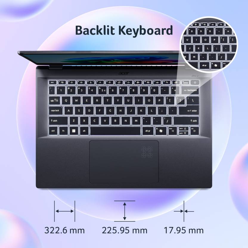 | Keyboard | 80-/81-/84-key Acer backlight keyboard with international language support, CapsLock and F4/Microphone mute indicators, Acer Sense Key, Copilot Key |