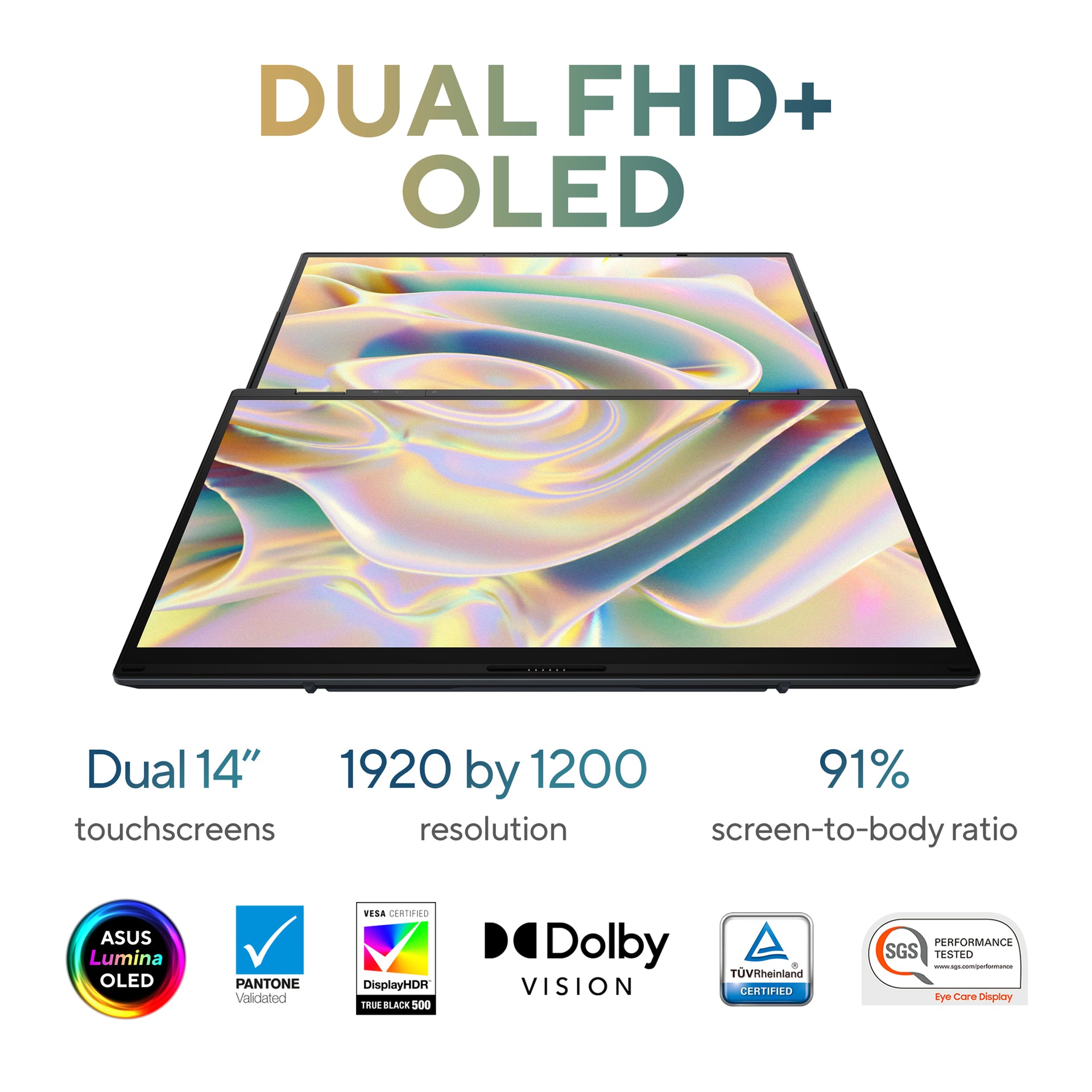 World's first dual-screen laptop with twin 35.56 cms (14.0) FHD 60 Hz OLED touchscreens.