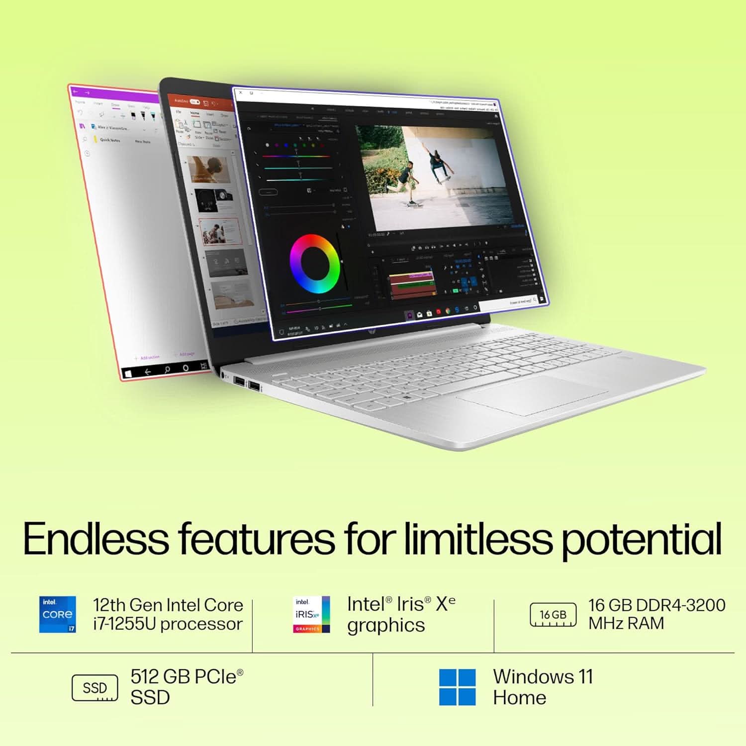 - HP 15S-FQ5190TU [CI7-1255U 12TH GEN/16GB/512GB SSD/WIN11 HOME+MSO/15.6 INCH/INTEGRATED GRAPHICS /1 YEAR(S)/SILVER]