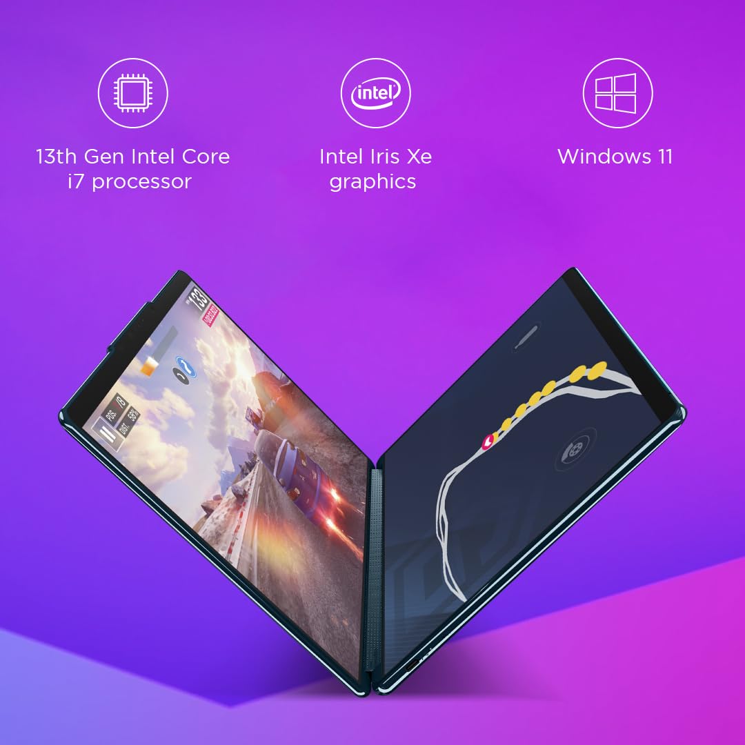 - Design: Dual Screen | Touchscreen Anti-Fingerprint Glass | 1.59 cm Thin and 1.34 kg Light