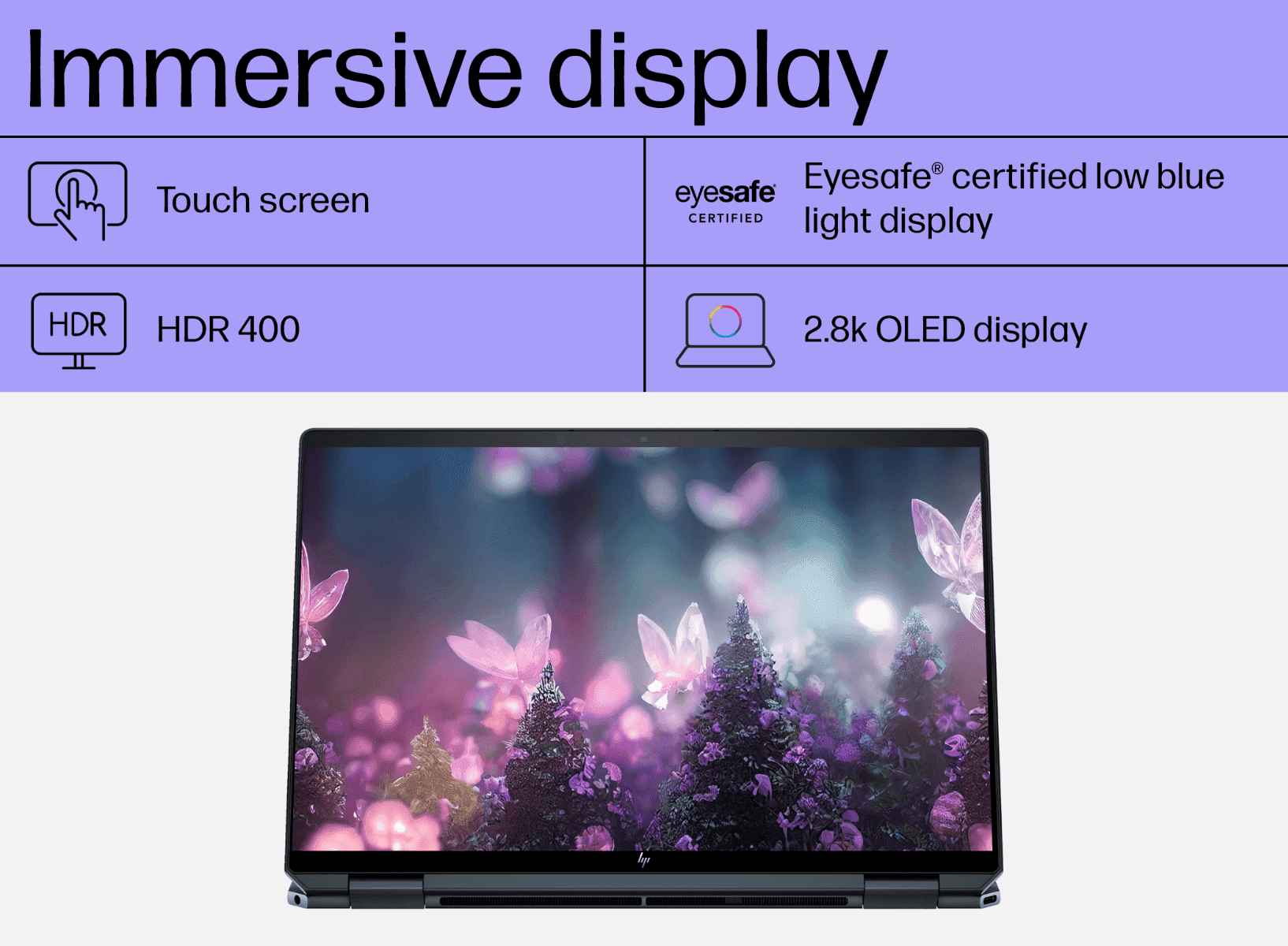 - 35.6 cm (14) diagonal 2.8K OLED 400 nits VRR 48-120Hz touch display with Intel® Arc™ Graphics