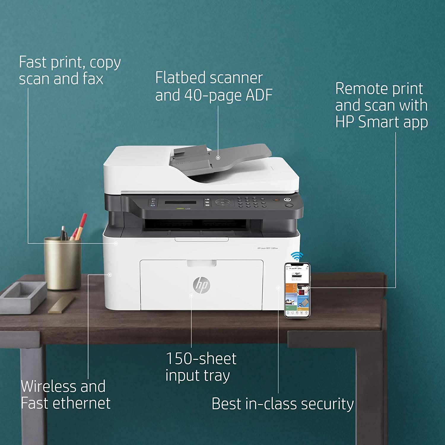 | Mounting Hardware | ?HP Laser MFP 138fnw; Preinstalled introductory HP LaserJet Black print cartridges (~1.5K pages,CH/IN); Setup Guide; Reference Guide; Regulatory Statements Flyer; Power,cord; USB cable; Telecom cable (4in1 only |