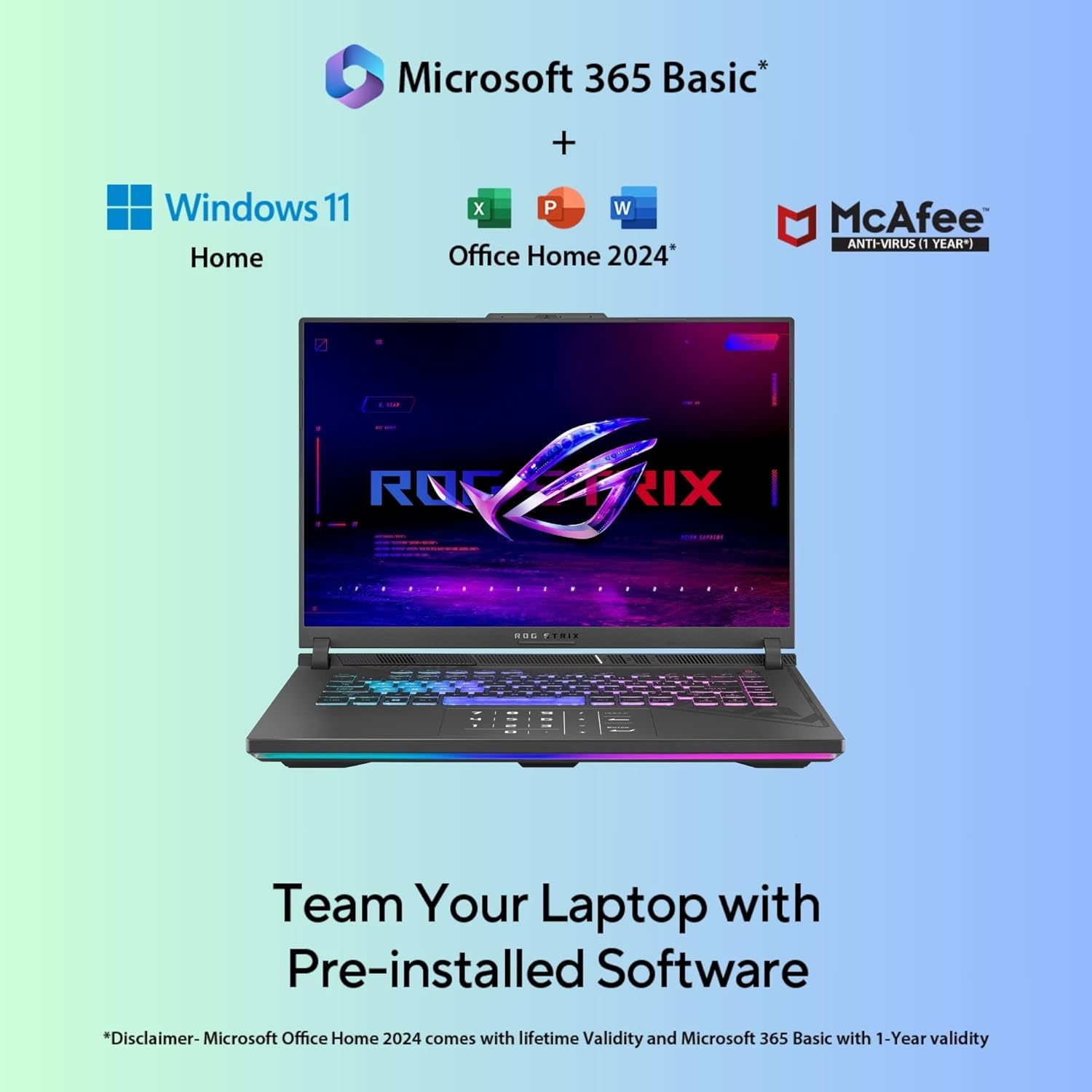 ASUS ROG STRIX G16 13TH GEN,INTEL CORE I9-13980HX GAMING LAPTOP(NVIDIA RTX 4060-8GB/140W TGP/16GB/1TB/QHD+/16"/240HZ/WINDOWS 11/M365 BASIC (1YEAR)*/OFFICE HOME 2024/ECLIPSE GRAY/2.50 KG)G614JV-N4242WS