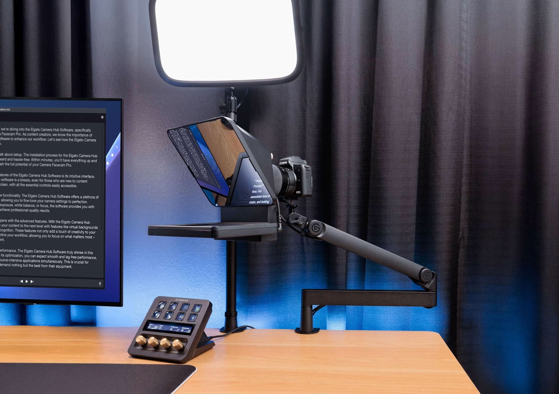 - Prompter has a built-in 9” display — no extra tablets or smartphones needed