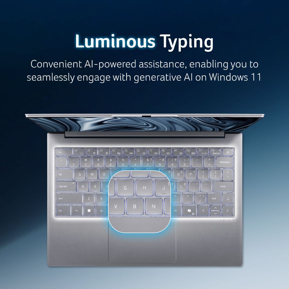ACER SWIFT LITE 14, INTEL CORE ULTRA 5 115U PROCESSOR, 16 GB/512 GB, WUXGA OLED, 14.0"/35.56 CM, WIN 11 HOME, MSO, LIGHT SILVER, 1.1 KG, SFL14-54M, BACKLIT KEYBOARD, PREMIUM THIN AND LIGHT LAPTOP NX.D2GSI.001