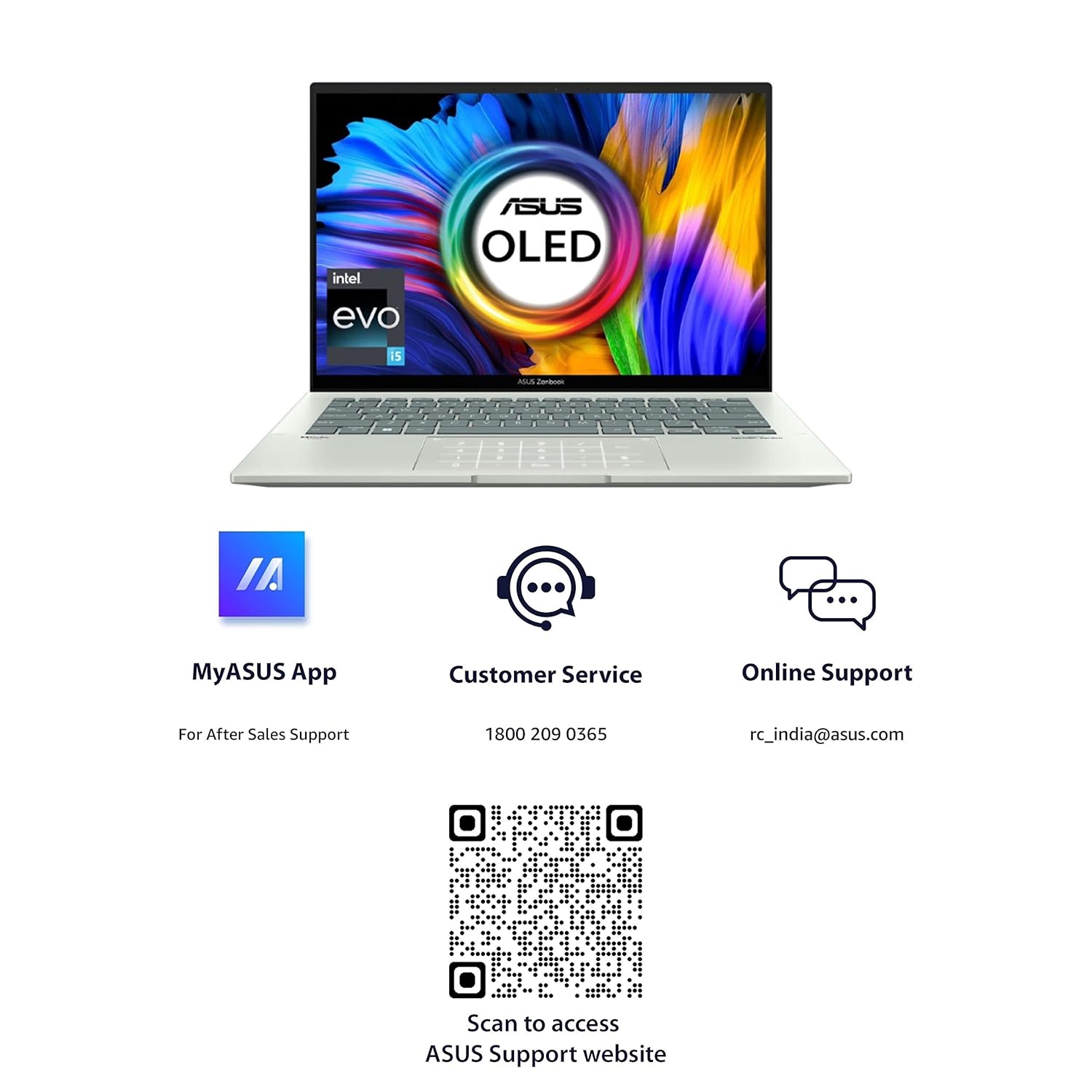 - ASUS ZENBOOK 14 OLED (2022), 14" (35.56 CMS) 2.8K OLED 16:10 90HZ, INTEL CORE I5-1240P 12TH GEN, THIN AND LAPTOP (16GB/512GB SSD/IRIS XE GRAPHICS/WIN 11/OFFICE 2021/CELADON/1.39 KG), UX3402ZA-KM532WS
