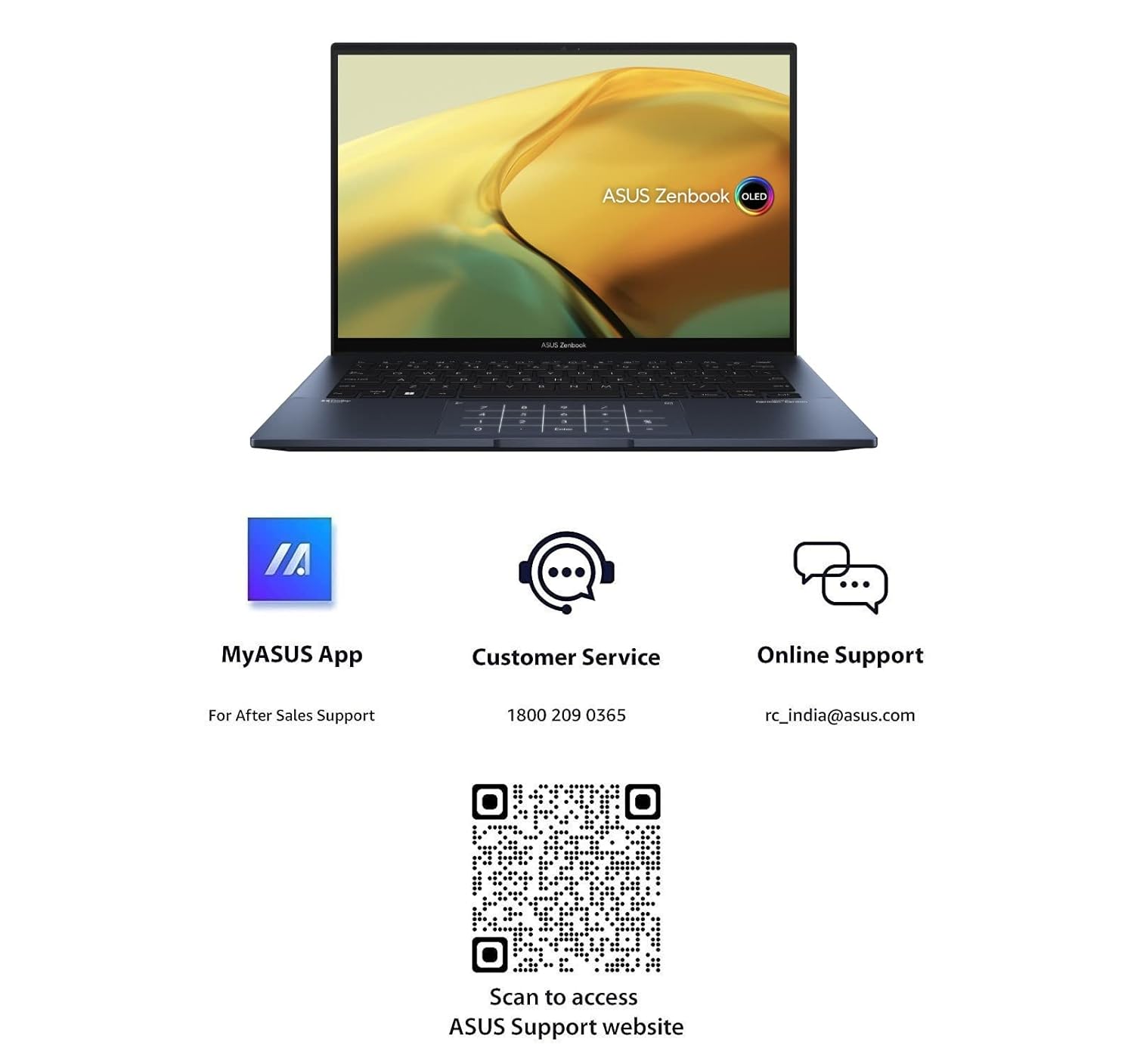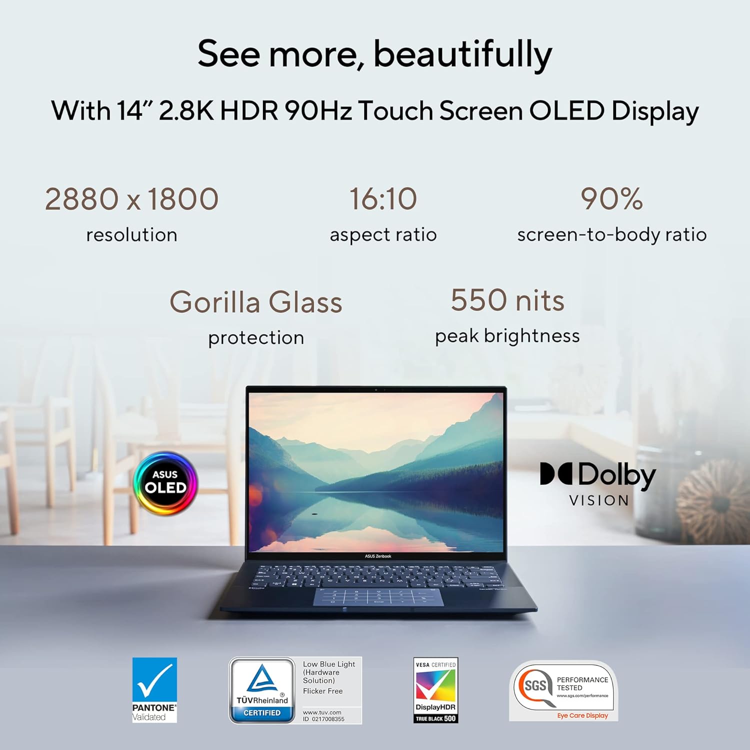 - ASUS ZENBOOK 14 OLED (2023), INTEL CORE I7-1360P 13TH GEN, 14" (35.56 CM) 2.8K 90HZ OLED, THIN & LIGHT LAPTOP (16GB/512GB SSD/IRIS XE/WIN 11/OFFICE 2021/75W BATTERY/BLUE/1.39 KG), UX3402VA-KN741WS