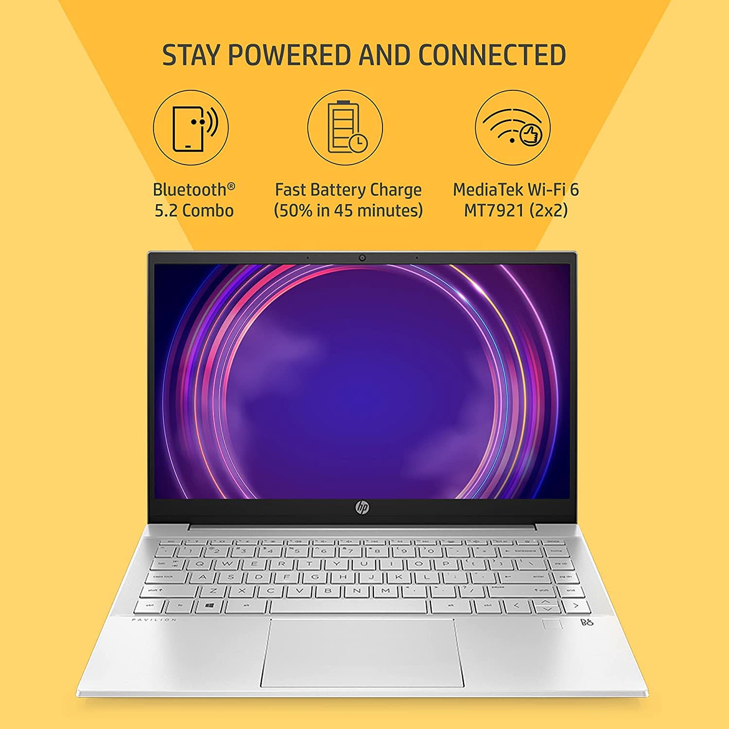 Ports: 1 SuperSpeed USB Type-C 10Gbps signaling rate (USB Power Delivery, DisplayPort 1.4, HP Sleep and Charge), 2 SuperSpeed USB Type-A 5Gbps signaling rate,1 Headphone/microphone Combo,1 AC Smart pin, 1 HDMI 2.1;Features: Camera: HP Wide Vision 720p HD camera with temporal noise reduction and integrated dual array digital microphones| Audio: Audio by B&O, Dual Speakers| Keyboard: Full-size backlit natural silver keyboard , HP Imagepad with multi-touch gesture support| Battery: 3-cell, 43 Wh Li-ion, Support battery fast charge| Networking: MediaTek Wi-Fi CERTIFIED 6 MT7921 (2x2) and Bluetooth 5.2 combo, MU-MIMO supported| Fingerprint Reader
