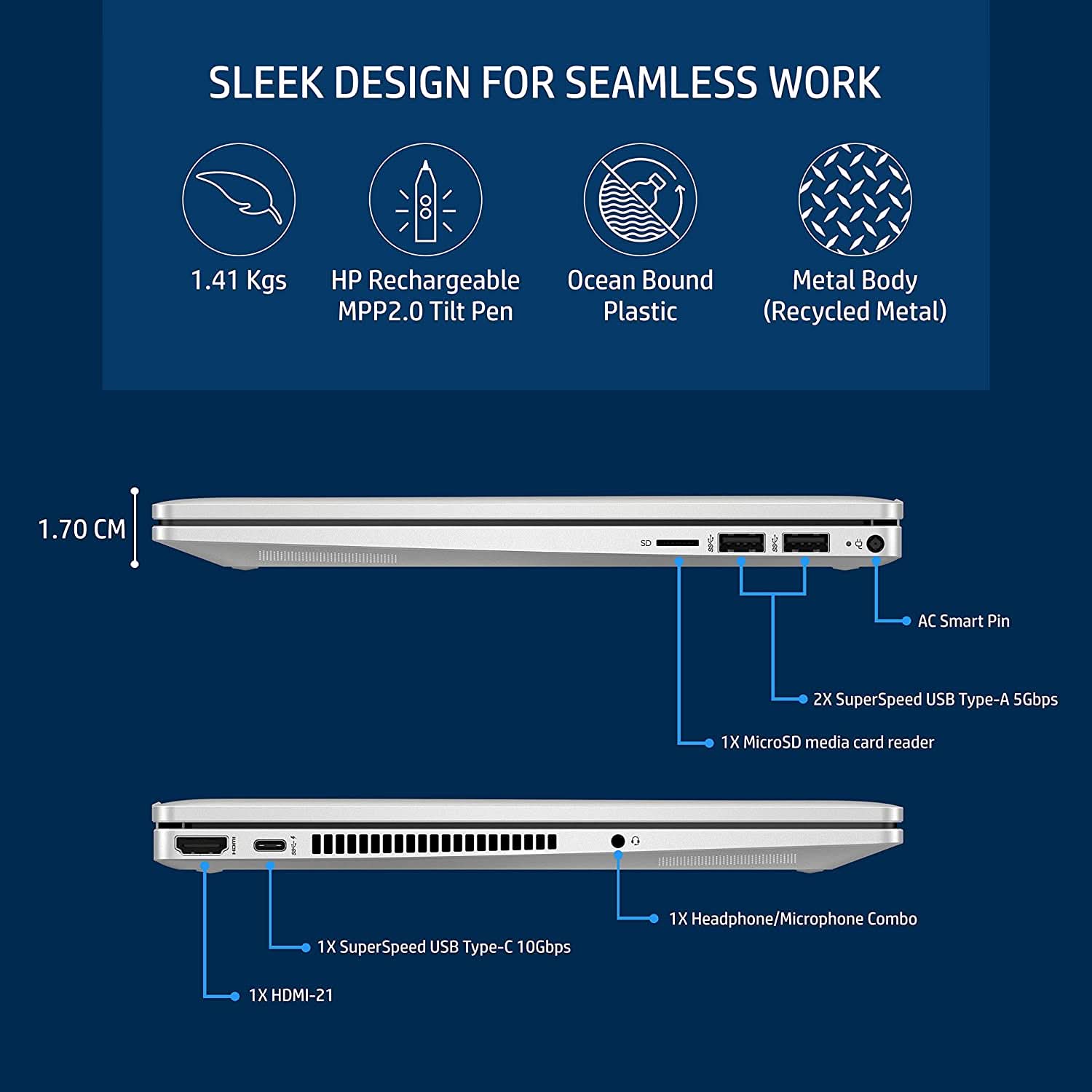 | Sales Package | Laptop, Power Adaptor, User Guide, HP Rechargeable MPP2.0 Tilt Pen, Warranty Documents |