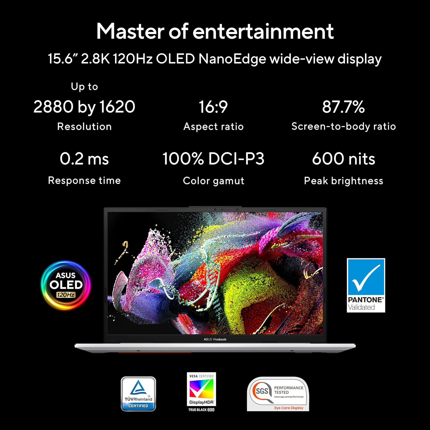 | Display | 39.62 cms (15.6) 3K (2880 x 1620) OLED Glossy display having 16:09 Aspect Ratio || 0.2ms Response Time || 120Hz Refresh rate || 600nits HDR Peak Brightness | |