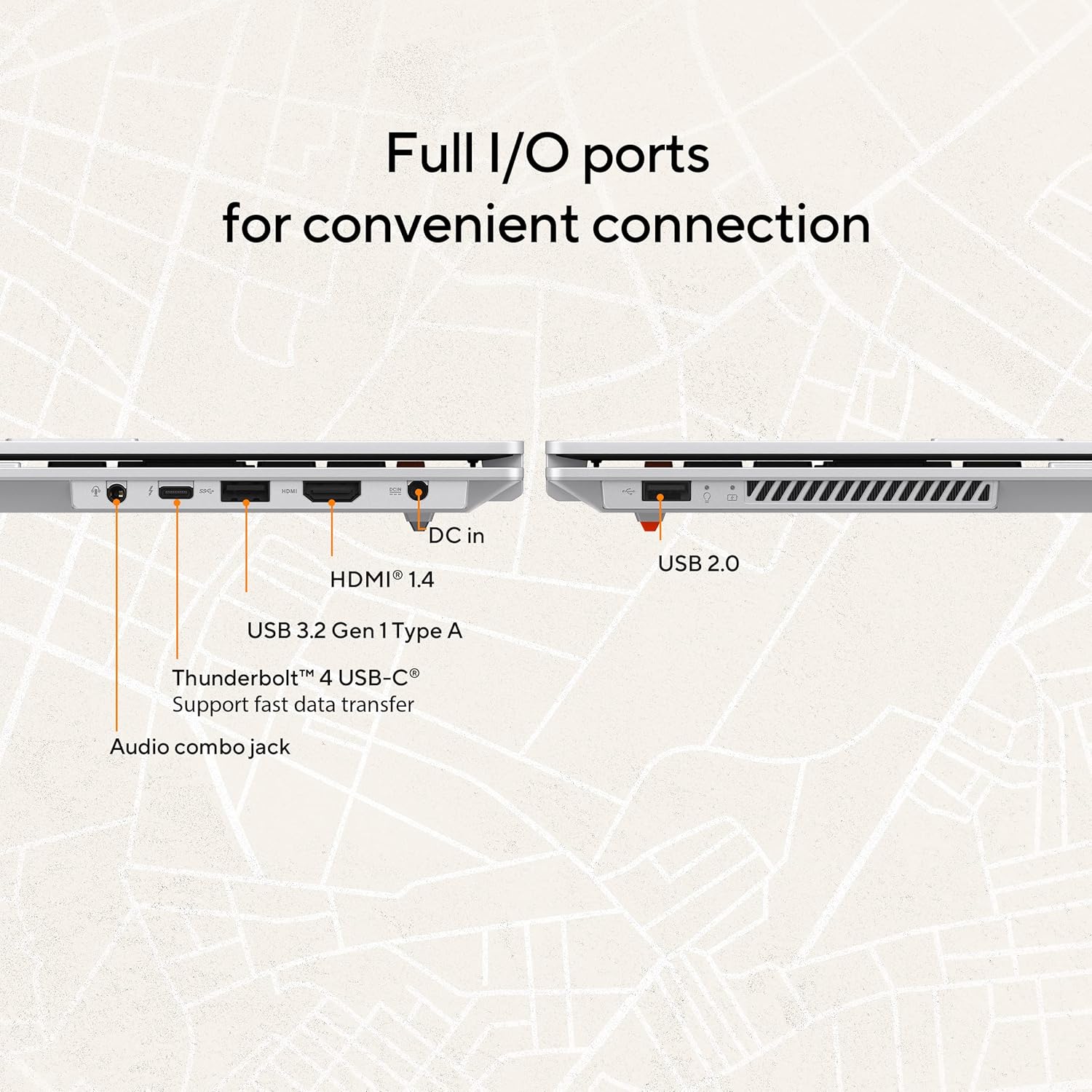 | I/O Ports | 1x USB 2.0 Type-A || 1x USB 3.2 Gen 1 Type-A || 1x Thunderbolt™ 4 supports display / power delivery || 1x HDMI 1.4 || 1x 3.5mm Combo Audio Jack || 1x DC-in | |