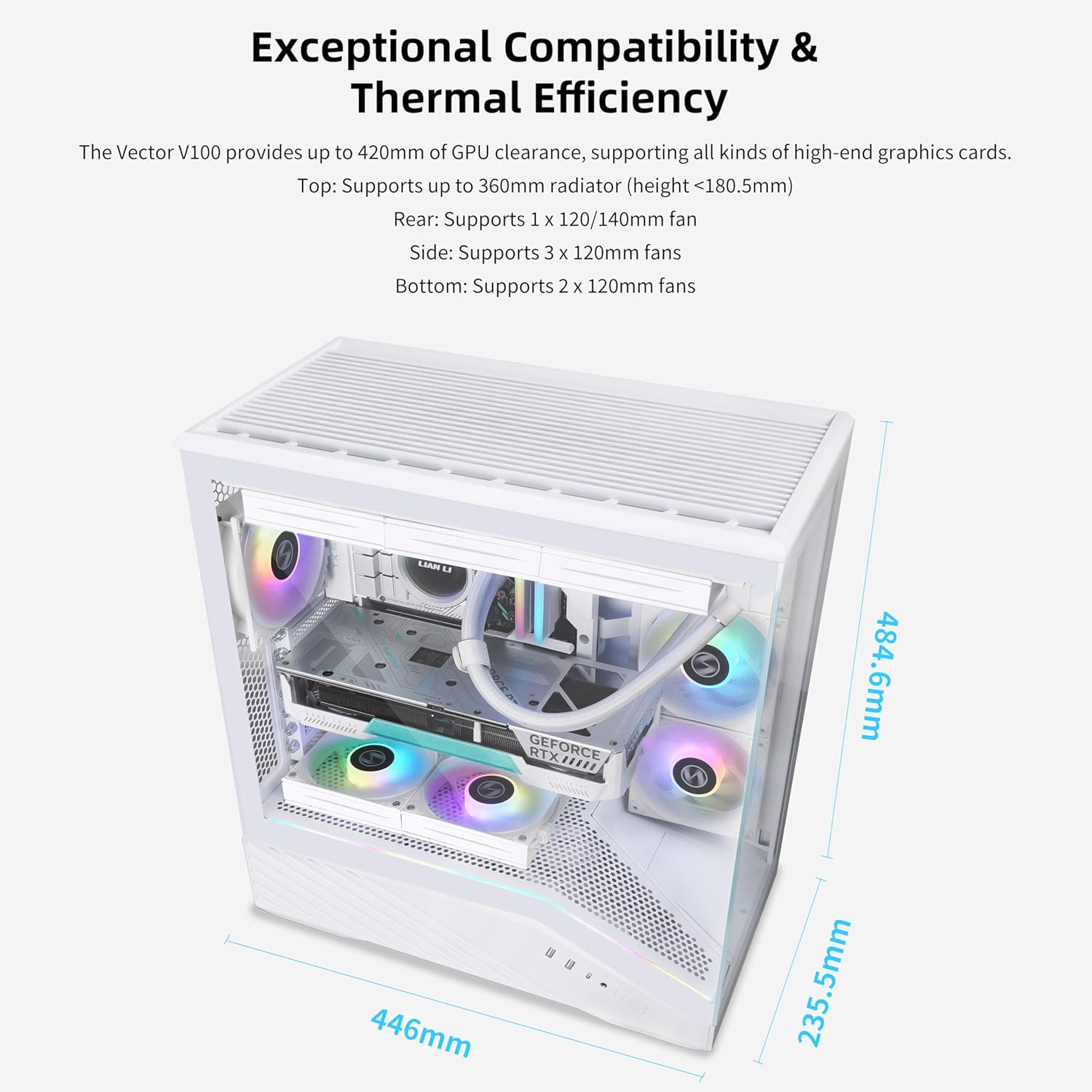 - Back-connect Motherboard & Large GPU Support: Back-connect ATX and Micro-ATX motherboards, accommodating high-performance graphics cards up to 420mm in length. And CPU cooler height up to 178mm.