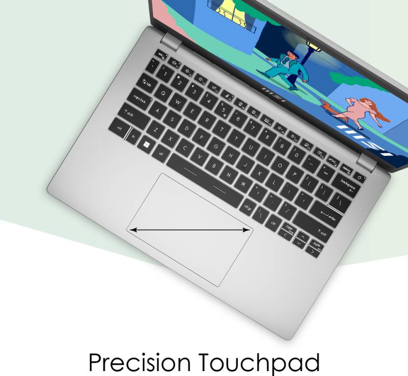 The extended touchpad on this laptop from the Modern series, which you can operate with only your fingertip, keeps your productivity intact. Plus, you can set up an astonishingly productive workflow by employing the Flip-n-Share and 180-degree lay-flat features to instantly share your screen. The long 1.5 mm key travel substantially enhances typing ergonomics. In areas with poor illumination, you can alternatively utilise a full-size lit keyboard.
