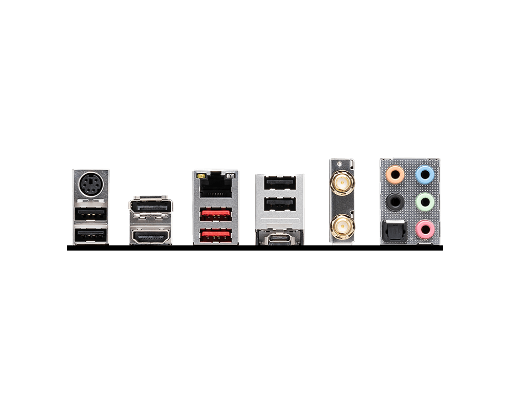 - WI-FI 6E CONNECTIVITY - Network hardware includes an Intel Wi-Fi 6E module with Bluetooth 5.3 & 2.5Gbps LAN; Rear ports include USB 3.2 Gen 2 Type-C & Type-A (10Gbps), HDMI 2.1 & DisplayPort 1.4, and 7.1 HD Audio with Audio Boost (supports S/PDIF output)