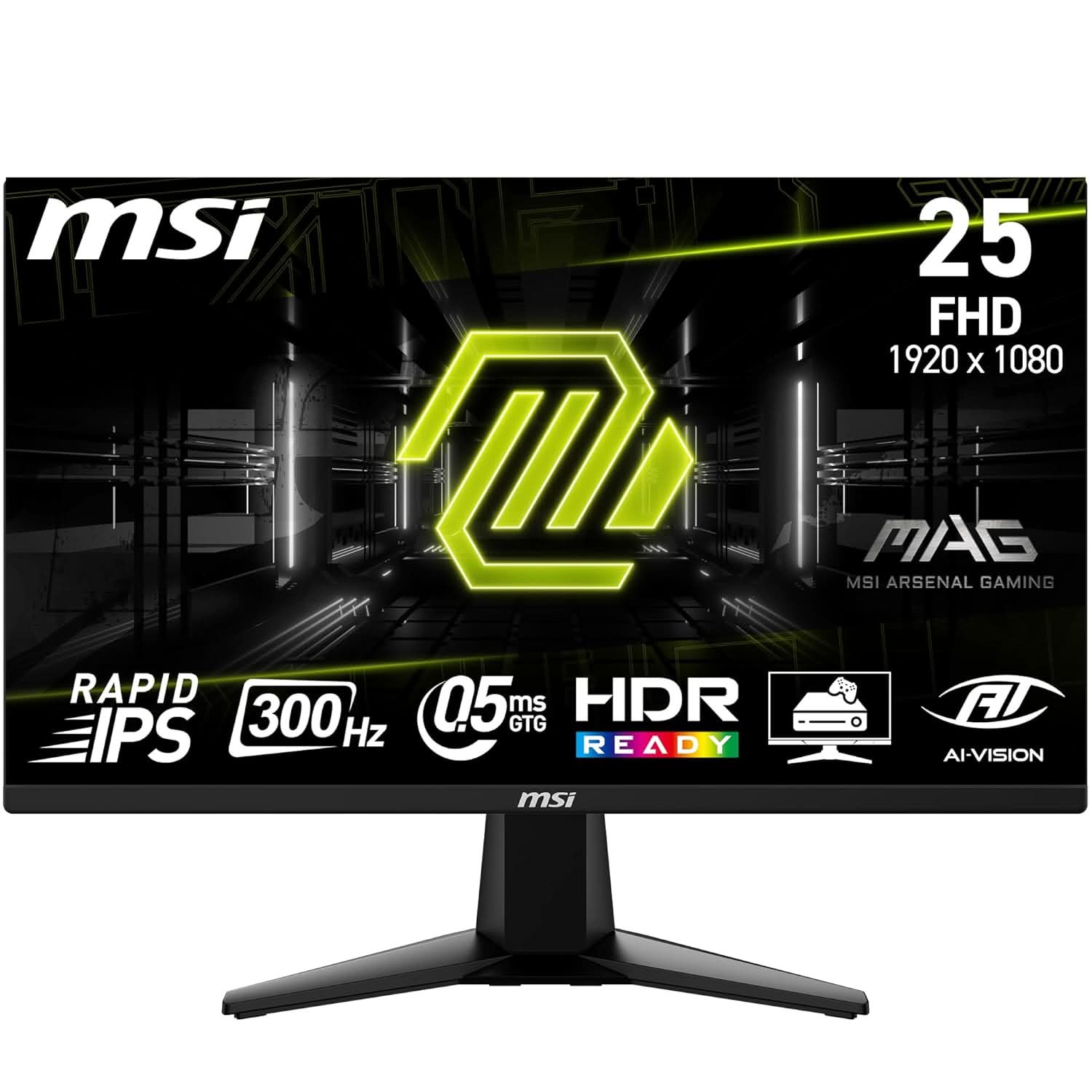 - 24.5”FHD, 300 HZ RAPID IPS - A high definition 1920 x 1080 Rapid IPS panel (16:9) features a high 300 Hz refresh rate for smooth movement tracking; A very low 0.5ms (GtG, Min.) response time is ideal for esports events