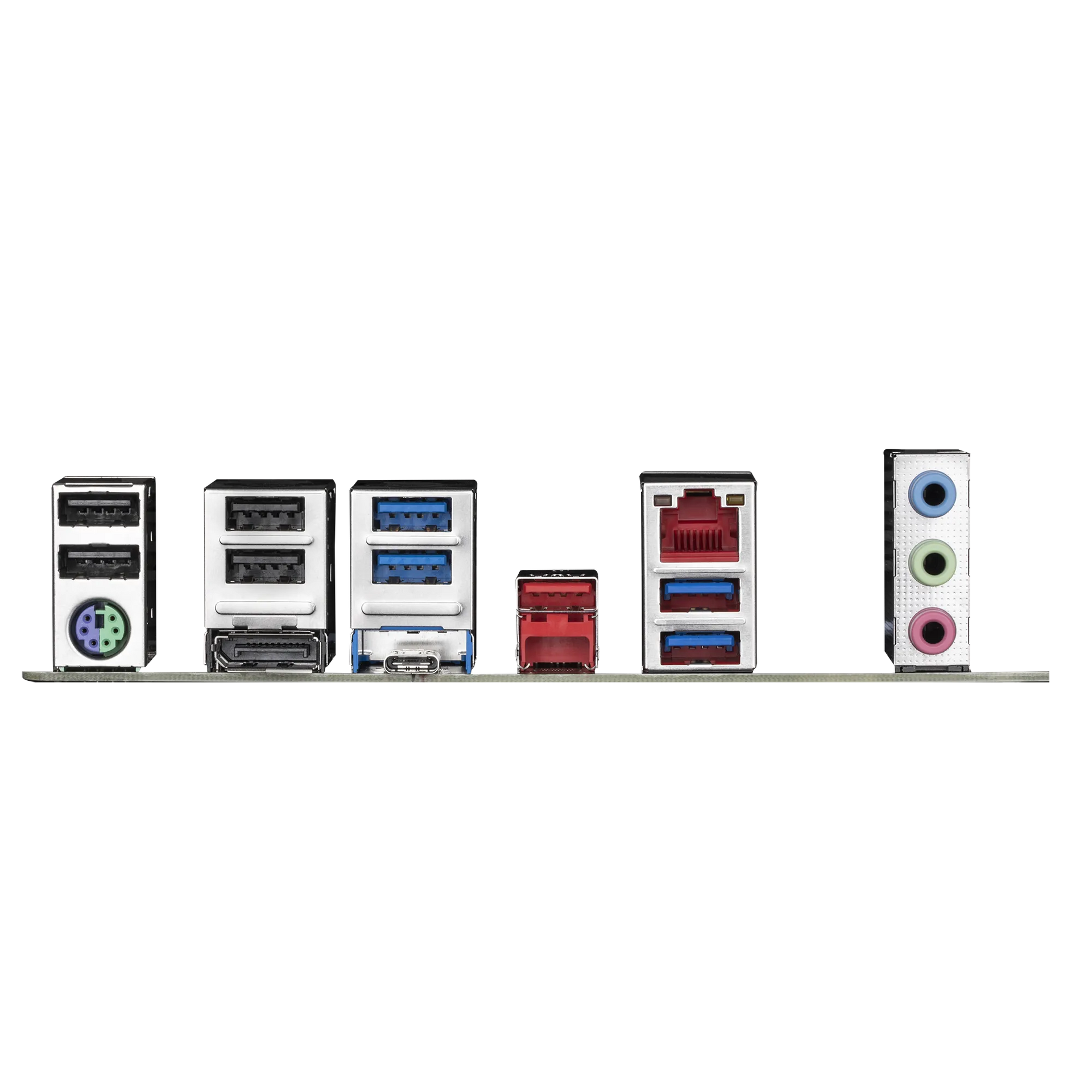 | Back Panel | - 4 x USB 2.0, 4 x USB 3.2 Gen 1, 1 x USB4® USB Type-C® - 1 x USB 3.2 Gen 2 Type-A (red), 1 x DisplayPort - 1 x PS/2 keyboard/mouse port, 1 x RJ-45 LAN port - 3 x audio jacks |