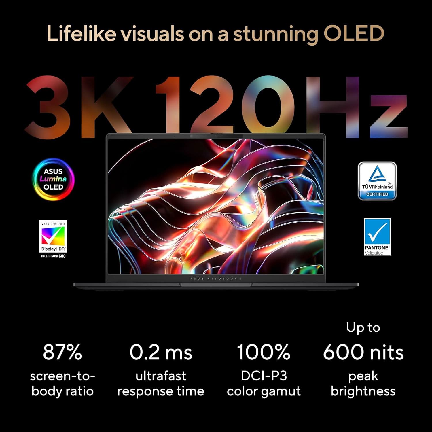 - Display : 14.0-inch,3K (2880 x 1800) OLED 16:10 aspect ratio,120Hz refresh rate,400nits Brightness